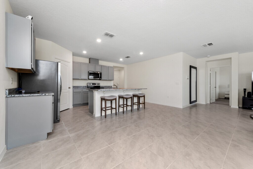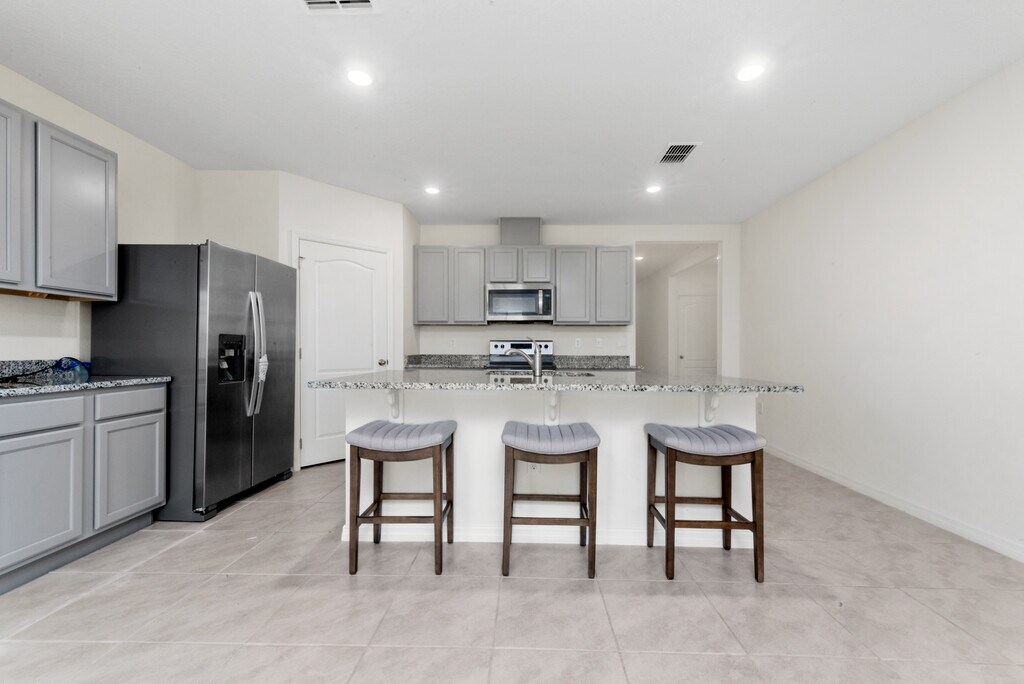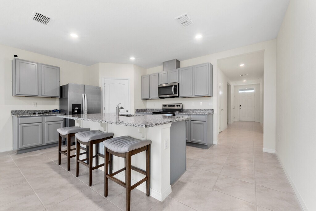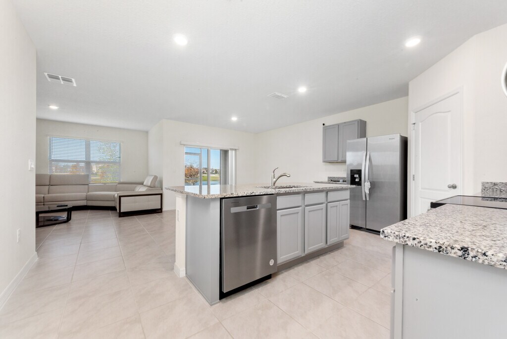 Discover this charming 4-bedroom, 2-bathroom single family, a quiet and highly desirable neighborhood in Davenport, Florida. with an open floor plan that blends comfort and functionality in one story. Master suite with a private bathroom and walk-in closet,Gourmet-style kitchen with granite countertops, stainless steel appliances, and a large pantry. Expansive living area perfect for family gatherings or entertaining.2-car garage. near to the amenities. Lawn care and security system are include.
