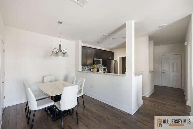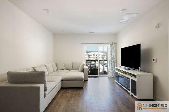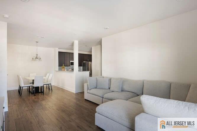 Located in the desirable community of The Lofts at Monroe Parke,this bright second-floor end-unit condo offers 2 bedrooms and 2 full bathrooms with an open floor plan and 9-foot ceilings. The end-unit location allows for abundant natural light throughout the home. Sliding glass doors lead to a private balcony,perfect for relaxing or entertaining. The kitchen features espresso cabinetry,quartz countertops,and GE stainless steel appliances,along with a convenient in-unit washer and dryer. A formal dining area opens to the spacious living room,creating an ideal layout for everyday living. Both bedrooms include walk-in closets,and the primary suite features a private bathroom with ceramic tile flooring and shower surrounds. Residents enjoy access to community amenities including a clubhouse,heated outdoor pool,fitness center,billiards room,business center,and conference space. Conveniently located near shopping,dining,and the highly regarded Monroe Township School District. Available for rent immediately.