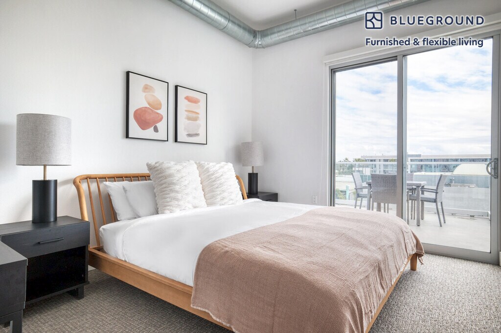 Show up and start living from day one in Los Angeles with this sophisticated one bedroom Blueground apartment. You’ll love coming home to this thoughtfully furnished, beautifully designed, and fully equipped Del Rey home. (ID #LAX967) The advertised rate of $4,350/month is the lowest available price, based on a 11 month(s) and 22 day(s) stay with a move-in date of January 16, 2027. Rates vary depending on the duration of stay, season, and other parameters. For exact pricing and additional pricing components, please visit our website and enter your desired move-in and move-out dates. The rate is applicable when billed upfront; it can be higher if billed in multiple payments. Brokers are welcome to reach out. Were you looking for an unfurnished lease? Try Blueground instead and upgrade from unfurnished to furnished living: - Furnished at rates comparable to unfurnished - No setup or furniture costs - save thousands - Move-in ready - save time, just bring your suitcase Designed with you in mind Gorgeous furniture, fully equipped kitchen, smart TV, and a premium wireless speaker are just a few of the amenities you’ll find inside this one bedroom apartment. Ideally located in Los Angeles, you’ll find a lot to love outside as well. When you’re ready to relax, you’ll be happy to discover every Blueground bedroom comes with superior quality mattresses, luxury linens, and cozy towels. We handle everything so you can simply show up and start living. This apartment also offers in-apartment laundry. Sleeping arrangements King Bed, 70.8in/180cm Amenities Building amenities unique to this one bedroom apartment include an on-site: - BBQ Area - Dryer - Elevator - Swimming pool - Washing machine - Lounge - Parking - Pets allowed Arrival and ongoing support The entire apartment is yours to enjoy! Throughout your stay, you’ll have access to our Client Experience team through the Blueground App. You can schedule additional cleanings, submit maintenance requests, and view our neighborhood recommendations with just a few taps. We’ll share all details upon confirmation of your stay. Other things to note Building amenities may have an extra cost. This Blueground apartment has flexible lease options, allowing you to book it for one month, a year, or more. Pets are welcome, though weight limits and breed restrictions apply and may incur fees. Parking is offered based on availability and is subject to a fee. We take great pride in ensuring every photo displayed is shot in our own units with our actual furnishings. That said, we regularly refresh our decor and furniture arrangement, which may differ from what’s pictured. [SI]