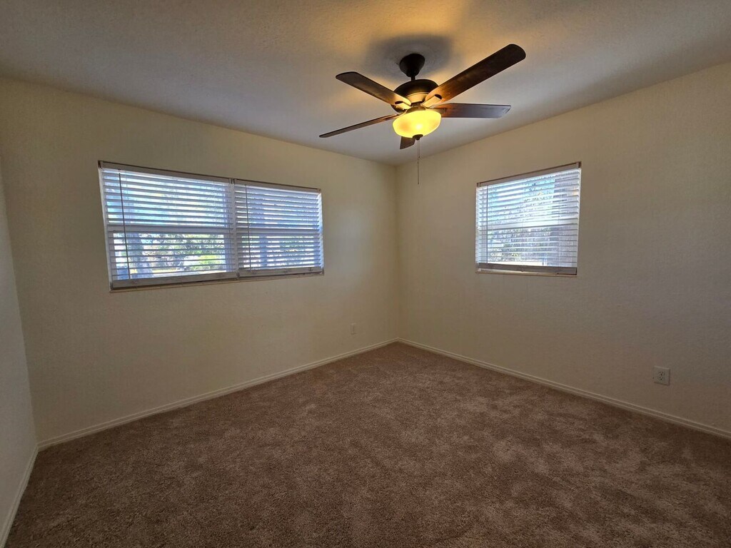 Discover your new home featuring a beautiful countryside back view. This spacious 2-bedroom, 1-bath property offers the perfect blend of indoor comfort and outdoor living. Step inside to a spacious living room filled with natural light from multiple windows, keeping the home bright and airy. The kitchen is equipped with modern stainless steel appliances, including a dishwasher for your convenience. The home features low-maintenance tile flooring throughout main areas, with cozy carpet in the bedrooms. Enjoy the outdoors from the front porch shaded by mature trees, or relax in the screened side porch overlooking the scenic backyard. The property boasts a large front yard, plenty of parking, and an extra storage shed for your tools and gear. Key Features: Comfort: Central AC, ceiling fans, and a full tub in the bathroom. Convenience: Stainless steel appliances and on-site storage shed. Outdoor Living: Screened side porch, large yard with shade trees.