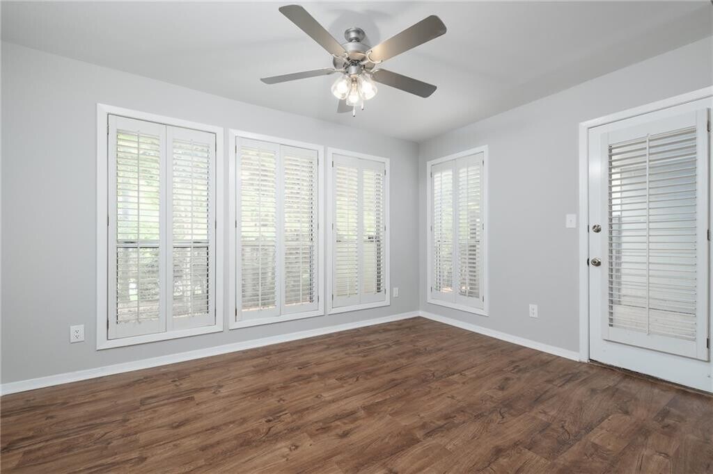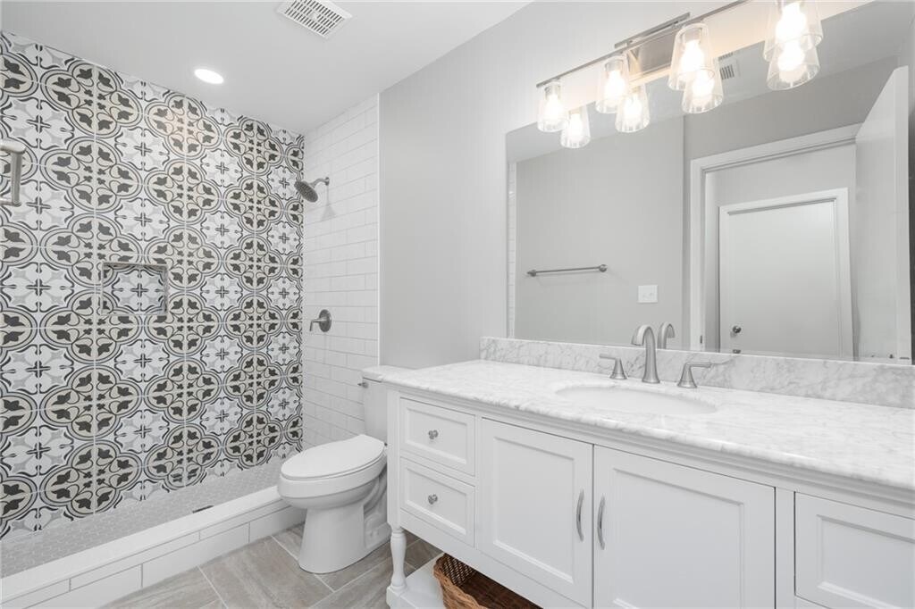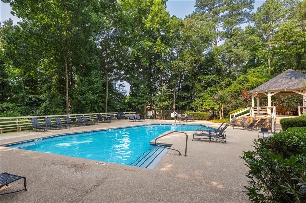 EVERYTHING IS NEW! Spacious lower level end unit 2-bed & 2-bath condo off Eves Rd in Roswell. Located in sought after Canyon Point,and surrounded by beautiful wooded views,this unit was completely remodeled in 2023! Welcoming fireplace and new flooring are inviting features to a spacious living rm w/ views to the sunroom. Upgraded designer chefs kitchen brings the granite tops,white cabinets,and SS appliances together while adding a nice textured look. Primary ste has a spacious walk-in closet,luxurious bath,and access to back patio. Community features a pool and tennis courts to unwind. Conveniently located by GA-400 & Holcomb Bridge with shopping,and dining spots.