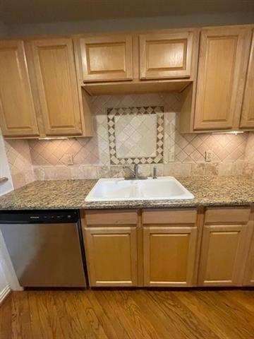 Location, location, location! Situated a block from The Shops of Highland Park and Equinox. This great 1-bedroom condo in Chimney 06 Condos is in the back of this tree shaded complex. The property features an updated kitchen with granite counters, beautiful bathroom and gleaming hardwood floors. Large has a custom closet too! Recessed lighting and ceiling fans plus a private balcony in back and front as well. Washer and dryer is located in the middle hall closet with shelving. Covered parking is directly behind the condo.
