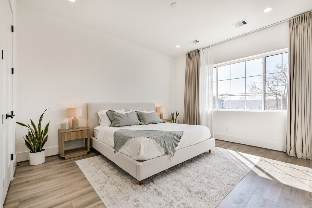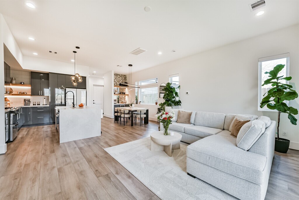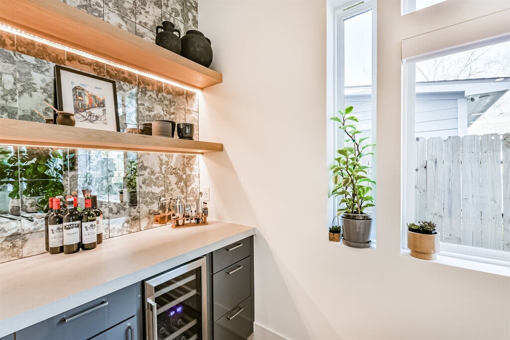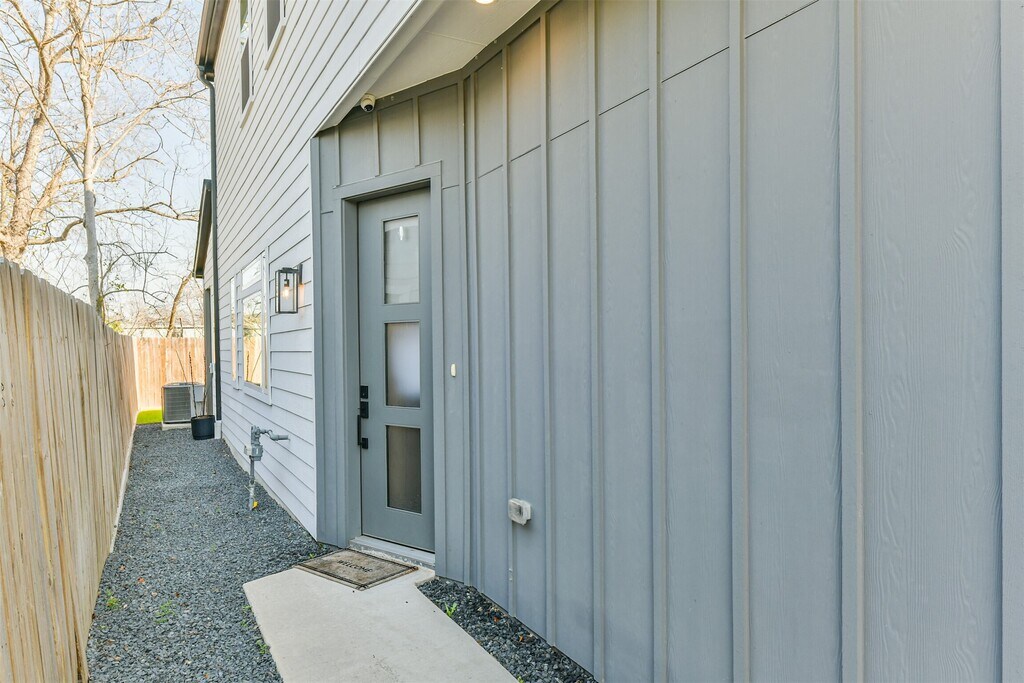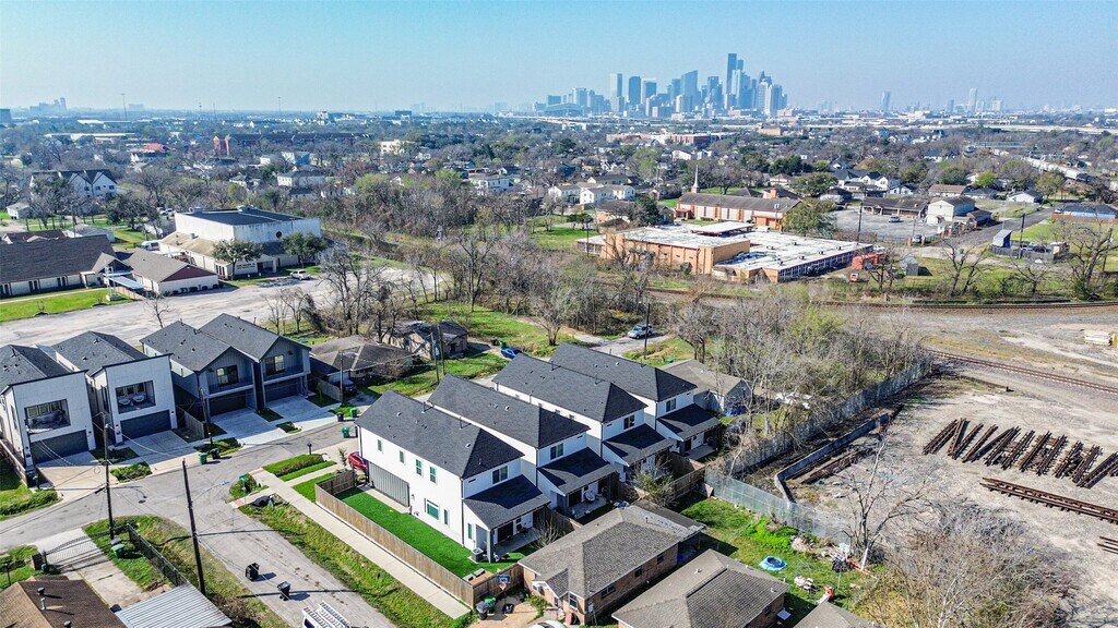 This home is in a secluded part of fifth ward with no back neighbors. It's nestled minutes from East River and Downtown Houston. This modern home blends style and functionality effortlessly. Natural light fills the open kitchen and dining area,showcasing a waterfall island wrapped in 5 cm quartz,a single basin sink,and sleek floating shelves. A convenient dry bar makes entertaining easy. With 10 foot ceilings throughout,the home feels open and airy. The covered patio and backyard offer a peaceful city escape. Upstairs,the primary suite features dual custom closets and a spa-inspired ensuite bath. Welcome home! MLS# 24283427