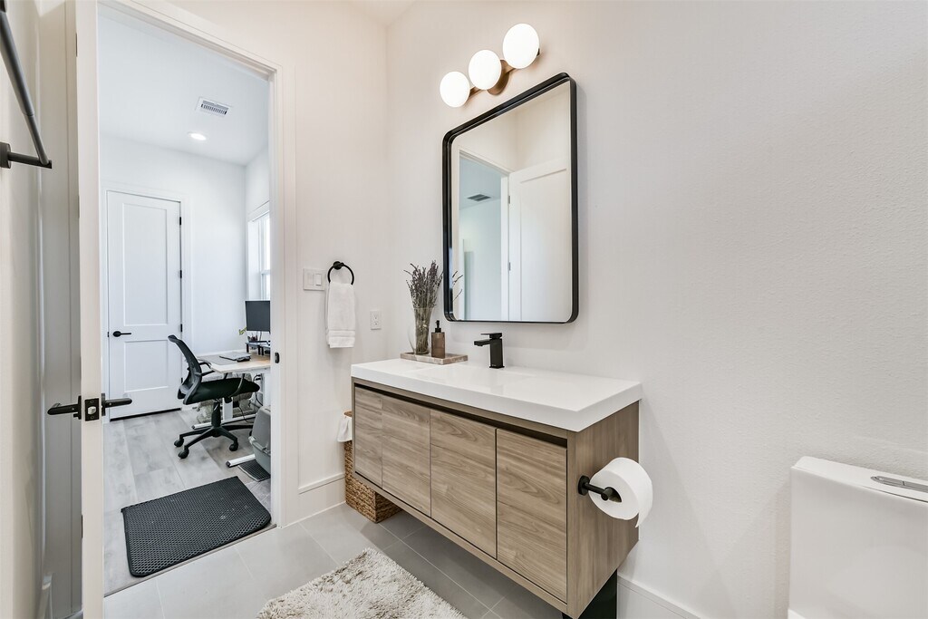 It's nestled minutes from East River and Downtown Houston. This modern home blends style and functionality effortlessly. Natural light fills the open kitchen and dining area,showcasing a waterfall island wrapped in 5 cm quartz,a single basin sink,and sleek floating shelves. A convenient dry bar makes entertaining easy. With 10 foot ceilings throughout,the home feels open and airy. The covered patio and backyard offer a peaceful city escape. Upstairs,the primary suite features dual custom closets and a spa-inspired ensuite bath. Welcome home! MLS# 24283427