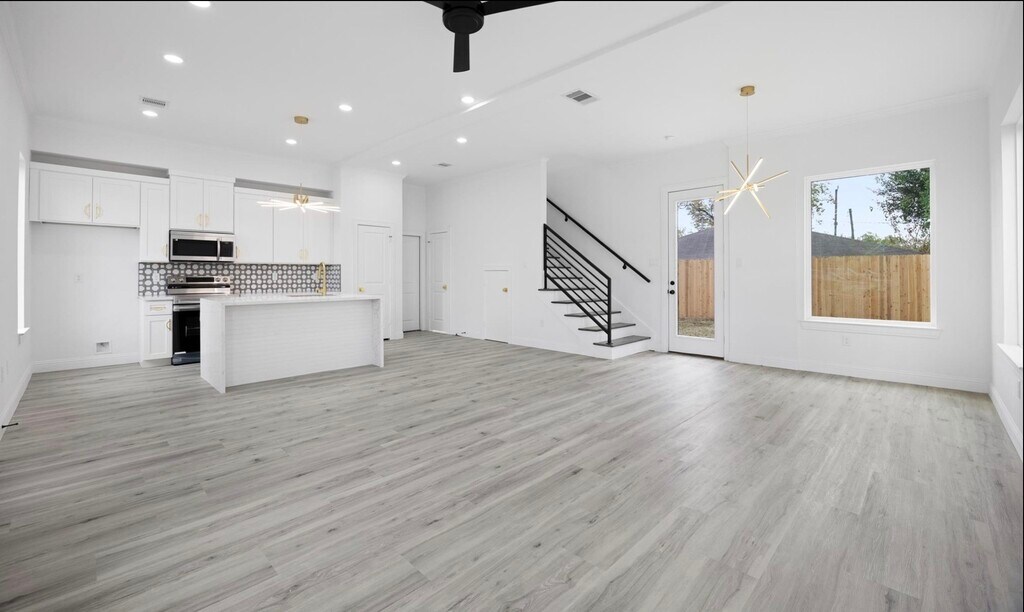 Modern new construction offering 2 stories with private entry,attached garage,and fenced yard space. Interior features include an open-concept living area with high ceilings,large windows for natural light,and luxury vinyl plank flooring throughout main areas. Kitchen offers modern cabinetry,quartz countertops,and stainless steel appliances. Spacious bedrooms with ample closet space and updated bathrooms with modern finishes. Convenient access to major freeways,Downtown Houston,and nearby amenities. Open to rental arbitrage. MLS# 65568244