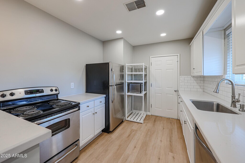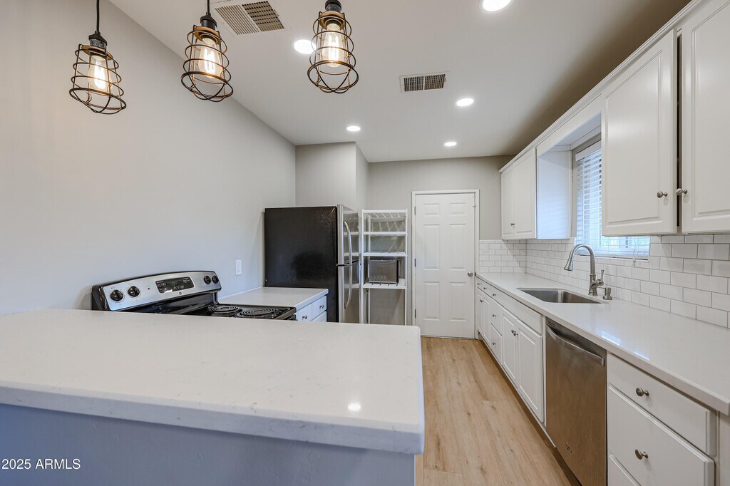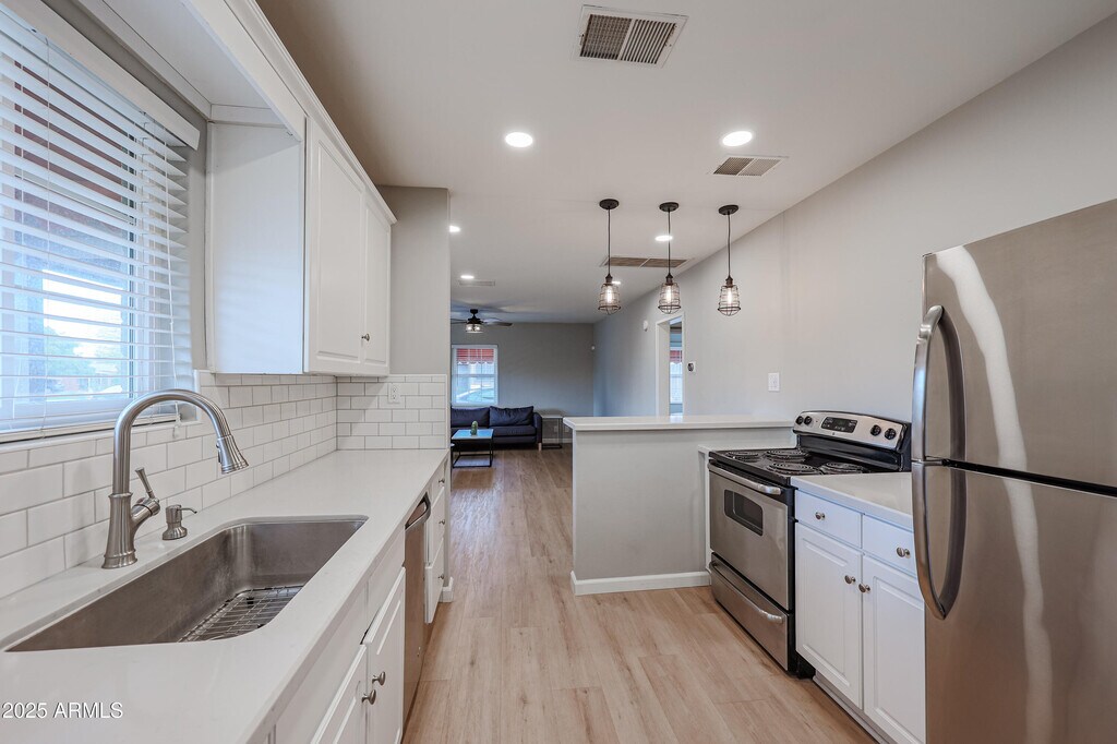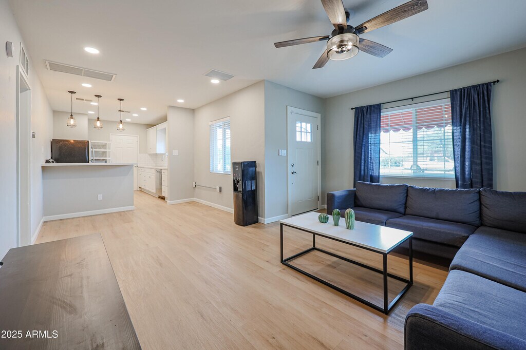 Red Brick Charmer in the Melrose District! Large backyard with lounge area,firepit,horse-shoe pit & tons of room for entertaining. This awesome two bedroom home also features a (rare) two-car tandem garage with mini split A/C (2021) and can be used as a gym,home office or flex-space of any kind! Only one owner since 2010,recently completed a full remodel! Improvements to home include the following: windows,A/C,roof,full electrical,sewer pipe to city,front door/security door,all flooring and counters,LG W/D,exterior gates,shower tile,bathtub,toilet,vanity,lighting,pocket door,fan,backlite and anti-fog mirror,and more! Moments away from shops,restaurants,light rail,Melrose District and Downtown Phoenix.