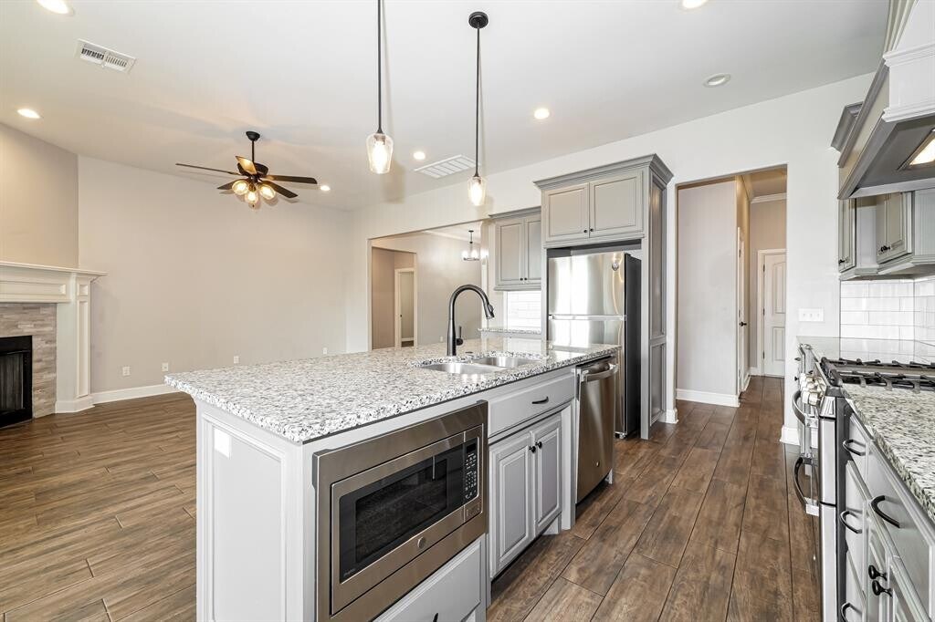 Beautiful 4-bedroom,2-bath executive home featuring granite countertops and abundant storage throughout,located in the Mustang School District! The spacious primary suite includes a luxurious bath with a deep soaker tub,standalone shower,dual sink vanity,and walk-in closet. Enjoy a cozy fireplace in the living room and a kitchen with a convenient breakfast bar,walk-in pantry,and stainless steel appliances. Additional highlights include a 3-car garage and a covered front and rear patios—perfect for relaxing or entertaining. Tours: To ensure a secure process,please schedule tours and apply for our properties exclusively through the official Evergreen Live website.