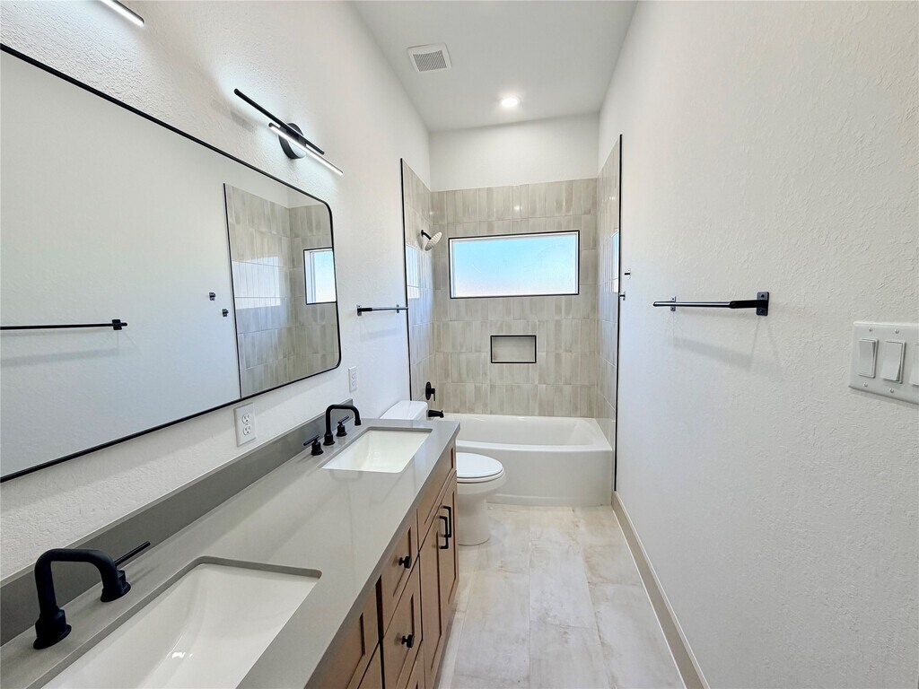 This home showcases bold,modern contemporary finishes from the moment you step through the front door. The open-concept design features an integrated kitchen with quartz countertops and soft-close cabinetry that flows with the living room,beautifully highlighted by a stunning rotunda-inspired chandelier—perfect for entertaining and everyday living. Elegant recessed wall lighting lines the hallway,adding a sleek touch while guiding you through the home’s thoughtfully designed layout. Enjoy 2.5 bathrooms,two generously sized secondary bedrooms,and a private primary suite that serves as a true retreat,complete with double vanities,an extended shower,and a spacious walk-in closet. The entire property is secured with gated access for added peace of mind. Step outside to a private rear patio and side yard—ideal for relaxing or grilling. MLS# 42728398