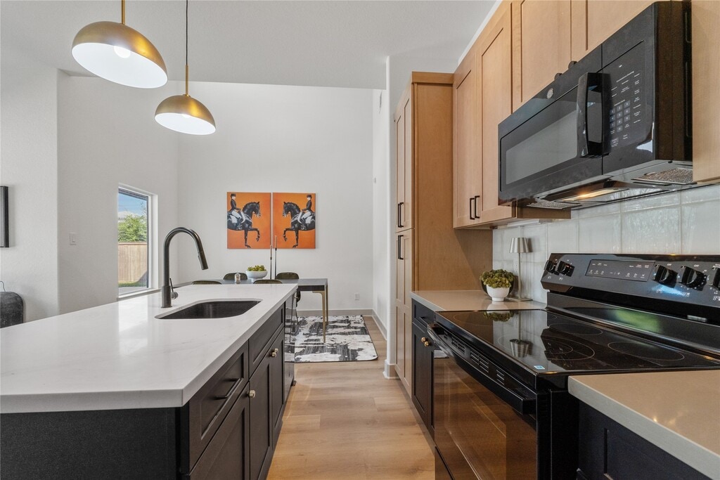 This home showcases bold,modern contemporary finishes from the moment you step through the front door. The open-concept design features an integrated kitchen with quartz countertops and soft-close cabinetry that flows with the living room,beautifully highlighted by a stunning rotunda-inspired chandelier—perfect for entertaining and everyday living. Elegant recessed wall lighting lines the hallway,adding a sleek touch while guiding you through the home’s thoughtfully designed layout. Enjoy 2.5 bathrooms,two generously sized secondary bedrooms,and a private primary suite that serves as a true retreat,complete with double vanities,an extended shower,and a spacious walk-in closet. The entire property is secured with gated access for added peace of mind. Step outside to a private rear patio and side yard—ideal for relaxing or grilling. *All appliances and lawn care are included* MLS# 24976612