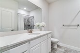 Great value, great home. Recently added swimming pool with plenty of surface decking, waterfall feature, large tanning area and it is HEATED! This home brings you a warm welcome with a spacious front porch that over looks green space across the street- right out your front door! Great for sitting and meeting. As you enter you find a welcoming entrance with views through the home to the back yard. Rich wood floors leads to large living with a fireplace and wall of windows on to a screened-in spacious back patio overlooking the summer pleasing refreshing NEW pool. Master retreat with a closet fit for royalty has views onto back yard. Oversized kitchen and eating area also has breakfast bar seating- great for entertaining. Gas cooktop, white cabinets, solid quartz countertops with built-in microwave and wall oven. Large island for setting out your feast! Guest bed or study is in the front with a full bath along with 2 secondary bedrooms with ample space. Upstairs you will find a large separated game room with a half bath and good storage! Gutters, great landscaping! the home feels very private with no homes looking into your back yard and a view between houses of a greenbelt with a walking path that traverses the neighborhood. New homes are selling for 700 to 850plus with no private pool! Come get this great home and make it yours TODAY! Easy to show and easy to fall in love with!