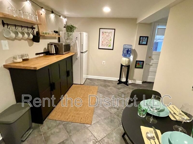 Welcome to this beautifully maintained, character-filled 4BR / 3BA rowhome ideally located on a quiet, tree-lined block in the heart of Petworth! This home features a 4BR / 3BA configuration with various amenities including a fully finished basement, stainless steel appliances, in-unit washer / dryer, and detached secure garage parking and storage. Inside, you're welcomed by a sun-filled living room complete with oversized windows and a cozy brick fireplace (for display only), joined by a formal dining room anchored by an elegant chandelier and original millwork details. The updated galley kitchen offers sleek stone countertops, updated white cabinetry, stainless steel appliances, a gas range, and custom tile backsplash which leads outside to your very own private patio area. Upstairs, you'll find generously sized bedrooms filled with natural light. The spacious primary suite offers ample closet space and access to a bright sunroom - perfect for a home office, nursery, or reading nook! The finished lower level offers exceptional additional living space, complete with a recreation area, guest suite, and a full bath. The detached garage offers secure parking and storage - a rare feature! Amenities include central A/C, hardwood flooring, finished basement, stainless steel appliances, gas cooking, in-unit washer & dryer, and garage parking. Prime Petworth location with easy access to Georgia Ave and Upshur Street dining and retail. Walk to Safeway, Yes! Organic Market, coffee shops, local restaurants, and parks. Convenient to Metro (Georgia Ave–Petworth), multiple bus lines, and major commuter routes. Lease Details: - Available April 9th - Minimum 12-month lease - Tenants responsible for water, gas, electric, and cable / internet (if desired) - Security deposit equal to one month’s rent - Cats only, subject to $50/mo pet rent - $45 non-refundable application fee