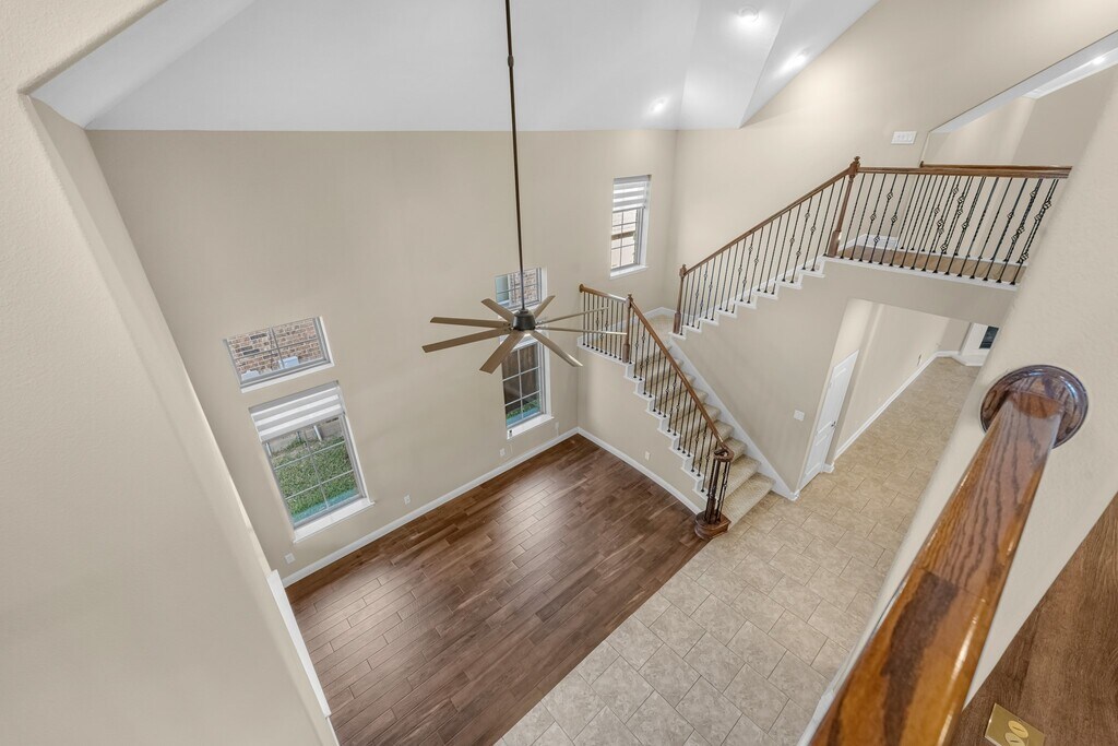 Gorgeous home featuring a sparkling pool,outdoor kitchen,beautifully finished epoxy-floor garage,and a fully EV-ready setup in the Churchill Farms community,zoned to top Katy ISD schools. The first floor offers a private office and two bedrooms,including an elegant primary suite with a walk-in shower and wardrobe,plus a guest suite with its own shower. The primary bedroom,living area,and breakfast nook overlook the peaceful pool and outdoor kitchen. Soaring ceilings elevate the foyer,dining/living area,and open family room,with a kitchen that flows seamlessly into the space. Upstairs includes a spacious game room. With engineered wood and tile flooring,four bedrooms,3.5 baths,and a quiet cul-de-sac location,this home delivers comfort and style. Churchill Farms offers tennis courts,two playgrounds,lakeside trails,dog stations,and a convenient walking path to the nearby schools. Move-in ready luxury! MLS# 69811306