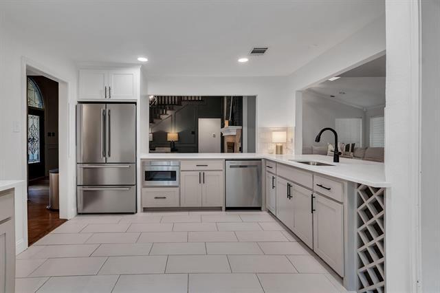 Beautiful, updated Colleyville home features 4 bedrooms, 3 bathrooms, hand scraped hardwood floors, soaring ceilings, double sided fireplace, gourmet chef's kitchen with large picture windows floods the kitchen with natural light. Fourth bedroom can serve as office or flex space. Open concept layout integrates the living, kitchen, and dining. Primary bedroom is on the first level and features separate closets, spa tub, shower with dual sinks. Backyard oasis, outdoor kitchen w sink, large diving pool with spa, private backyard. Lawn and pool maintenance included. Near great shopping and restaurants in Colleyville and Southlake, easy access to DFW Airport.