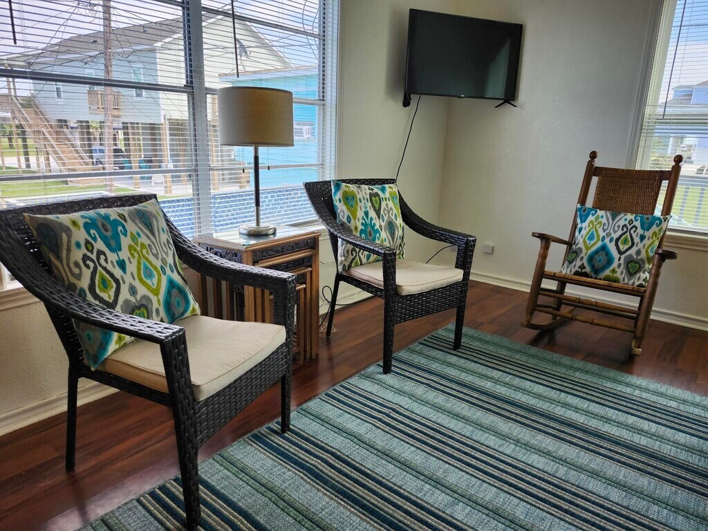 Charming coastal retreat located at 4215 Hardin in Galveston. terms flexible. Cozy 1-bedroom Galveston beach house in Sea Isle with wheelchair ramp and wheelchair accessible large shower. washer/dryer,outdoor private shower downstairs to wash off sand from beach,complete kitchen with fridge. Partial ocean views from deck and den window. Access to boat ramp and fishing pier! Community Pool,tennis court,marina with boat launch and restaurant. MLS# 60983768