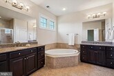 Move-in ready and neutral throughout. This home offers a chef's kitchen with upgraded cabinets, granite countertops and stainless steel appliances. Enjoy meals in the sizeable breakfast room and appreciate the warmth of the hardwood floors. The primary bedroom serves as a true retreat, complete with tray ceiling, two large walk-in closets, and a spa-like ensuite featuring a soaking tub, separate shower and separate vanities. Charming dining room with wainscoting, perfect for a relaxed yet elegant setting. The finished walk-up basement offers a spacious recreation room, office/media room, ample dedicated storage, and a full bathroom. The large Trex deck is a seemless extension of the home, perfect for entertaining and relaxing with its built-in seating.