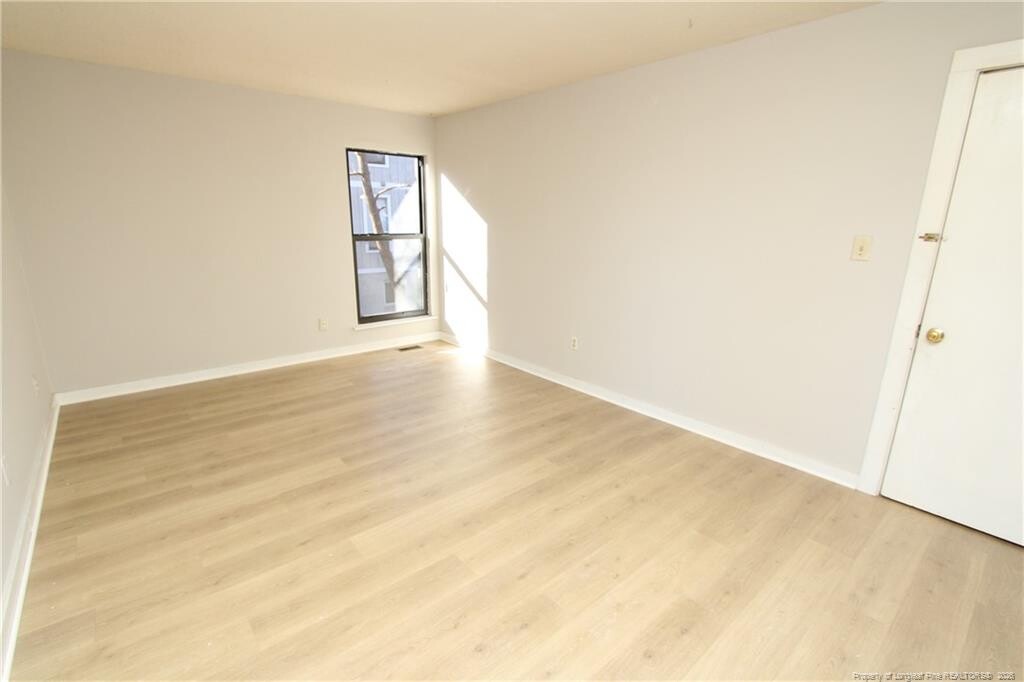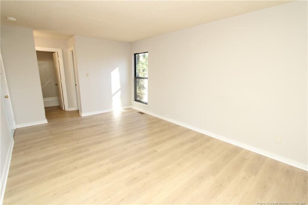 Available immediately, this well-maintained and affordably priced first-floor 2 bedroom, 2 bathroom condo at 4216-B Greencastle Court offers comfort, functionality, and a highly convenient Raleigh location. A private, covered entrance welcomes you inside to a bright and inviting interior finished with fresh, neutral paint and durable luxury plank flooring throughout, creating a cohesive and modern look that is both stylish and easy to maintain. The open floorplan is anchored by a spacious family room featuring a decorative fireplace that adds warmth and character while allowing for flexible furniture placement. An adjacent dining area seamlessly connects the living space to the kitchen, making the layout ideal for everyday living and casual entertaining. The kitchen offers ample cabinetry, generous counter space, and a full appliance package arranged in a practical galley-style design. Just off the main living area, a screened-in porch extends the living space outdoors and overlooks a peaceful wooded setting, providing a quiet retreat for morning coffee or evening relaxation. The primary bedroom is generously sized and includes a large walk-in closet along with a private en-suite bathroom featuring a tub/shower combination and extended vanity. The secondary bedroom is also well-proportioned and is conveniently located near a full hall bathroom, making it ideal for guests, a home office, or shared living arrangements. Situated on the first floor for ease of access, and located near major roadways, shopping, dining, and downtown Raleigh, this condo offers a comfortable and practical living option in an established community.