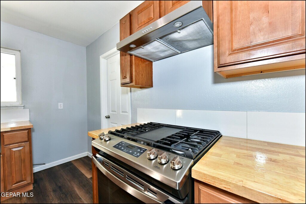 Mountain views and modern updates define this Westside El Paso home located near the Franklin Mountains. The interior features a carpet-free layout with ceramic tile and wood flooring throughout. The kitchen is equipped with custom cabinetry,butcher block countertops,a gas cooktop,and a built-in oven. An open floorplan provides multiple living areas that flow naturally into the dining space. High-efficiency solar panels are installed to help manage electricity costs. The exterior includes a private,walled backyard with a covered patio and low-maintenance landscaping,ideal for enjoying El Paso sunsets. Practical additions include refrigerated air,a dedicated laundry room,and a single-car garage with additional storage space. This property offers quick access to UTEP,medical centers,and the dining options in the Kern Place area,making for an efficient commute via I-10 or Mesa Street. Deposit-Free Renting service to Obligo qualified renters,fees may apply.