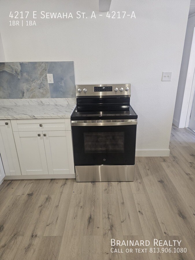 Experience effortless living in this meticulously updated 1-bedroom apartment. Every inch of this home has been refreshed with a clean, modern aesthetic. From the brand-new, wide-plank flooring to the crisp white shaker cabinets and stunning marbled backsplash, this unit feels like a high-end retreat. Highlights You’ll Love: Designer Kitchen: Features beautiful stone-look backsplash and ample cabinet space. (New SS appliances being installed!) Bright & Airy: Large, energy-efficient windows and fresh paint flood the space with natural light. Premium Upgrades: Modern bathroom with a walk-in tiled shower and elegant pedestal sink. Prime Location: Walk to Busch Gardens and Adventure Island. Perfect for those who want to be near the action while enjoying a quiet, well-kept home. The Details: Rent includes professional landscaping. Tenant is responsible for electric + a $70/mo flat fee for water/trash. Move-in requires First Month’s Rent and a matching Security Deposit. We are seeking a tidy, responsible tenant to enjoy and care for this beautiful space.