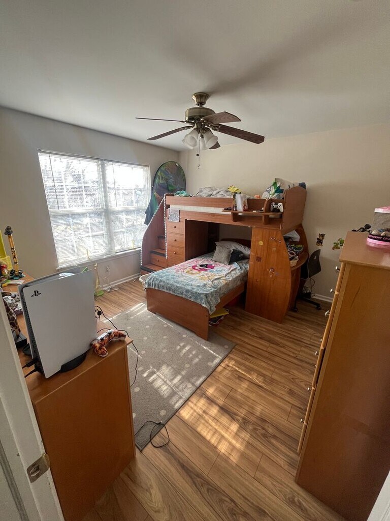 Welcome home to this gorgeous 4 Bd / 2.5 Bth home in the highly desirable Buckingham Square. Beautiful hardwood flooring, living room with fireplace and vaulted ceilings, eat in kitchen with formal dining room that wraps around into the front living room. 4 bedrooms on the second floor along with the washer/dryer. Master bedroom with vaulted ceiling and bathroom with jacuzzi tub and walk in stall shower. Huge basement with plenty of play and/or storage space. Backyard with small patio and huge deck overlooking the backyard and trees out back. 2 car garage with EV charger. Email to learn more information and schedule a screening phone call. Available May 1, 2026.