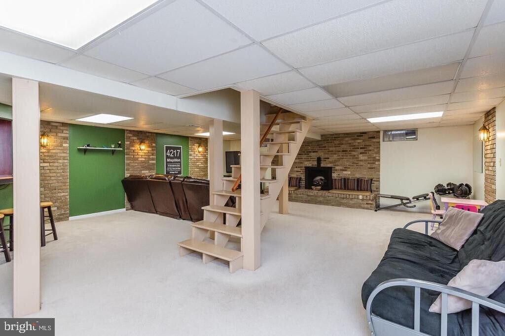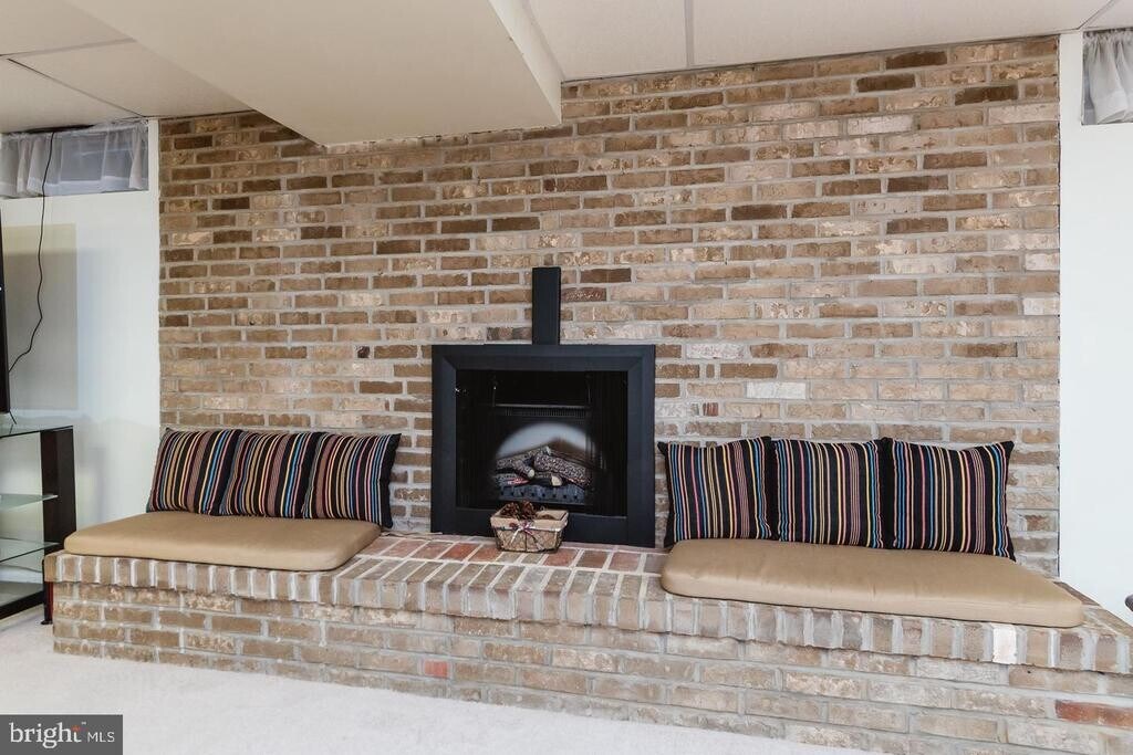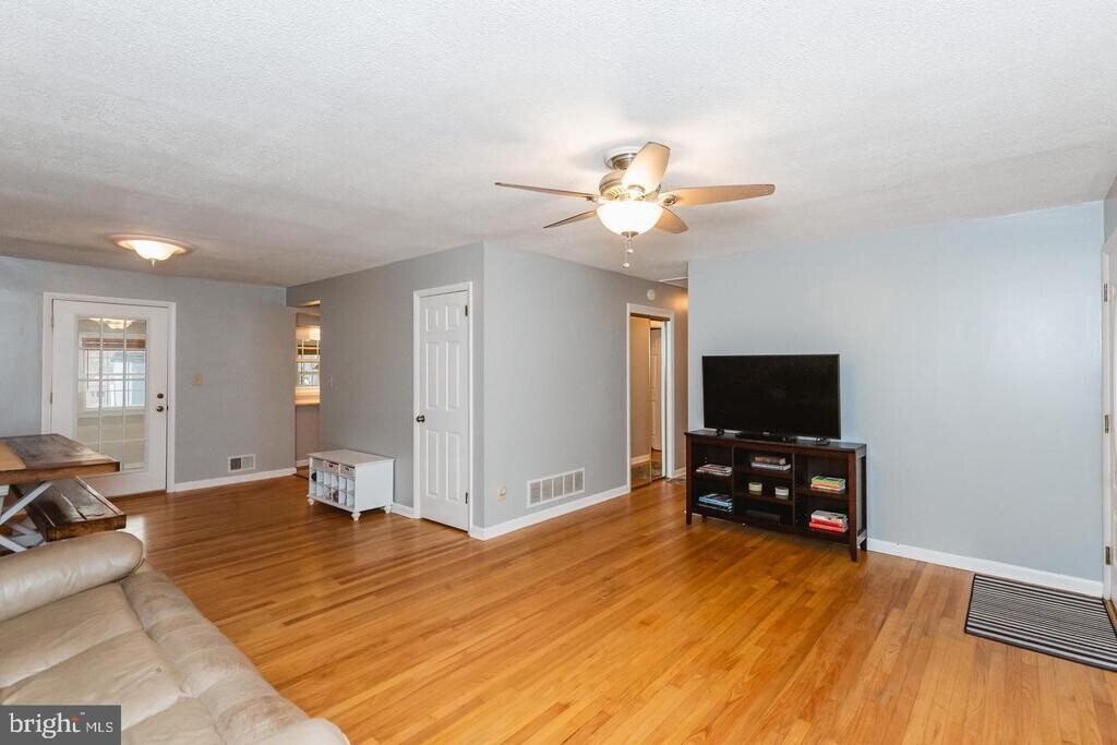Stylish 3 bedroom 2 1/2 bath porch front rancher with large level rear yard, long driveway for extra parking, on quiet non-thru street. Huge recreation room with electric fireplace in large brick facing and built-in bar, nice private patio, den and bonus room on first floor. Owner pays for solar panel on roof that will provide significant reduction in summer electric bill.