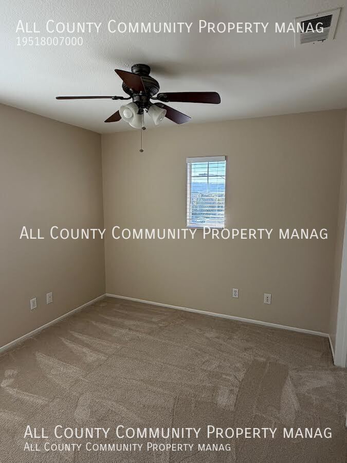 *AVAILABLE NOW! This beautifully updated 3-bedroom, 2-bathroom home in Temecula is ready for immediate move-in! Recently refreshed throughout, the home features fresh interior paint, brand-new carpet, new blinds, and a newly installed fence for added privacy. With a bright and inviting layout, this home offers comfortable living spaces perfect for relaxing or entertaining. Conveniently located near shopping and dining, it’s an excellent opportunity to enjoy all that Temecula has to offer. Don’t miss your chance to make this move-in-ready home yours! *Tenants are responsible for utilities in full (gas AND electric) as well as an additional $9.95 technology fee each month. Owner pays for water, trash, HOA and landscaper. *This home is managed on behalf of the homeowner by All County Community Property Management (ACCPM). Our office number is . Our website is All available properties are listed directly on our website. *PLEASE BE AWARE OF ANY POTENTIAL SCAMMERS. If you see a price for a property listed that looks too good to be true, it most likely is. ACCPM will never ask for a deposit or application fees to be paid before viewing a home or being properly screened. ACCPM will never ask for payments via Zelle/Cashapp/Paypal/Etc. Before sending any money to anyone, please call our office at . Please schedule all viewings directly through our website.