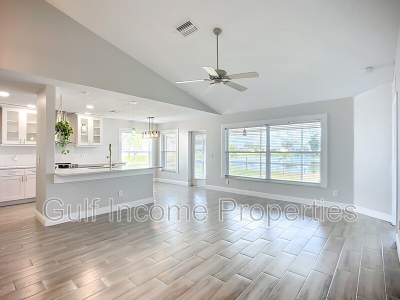 Welcome to this annual waterfront rental located in the Kingsfield community of Parrish. This 3-bedroom, 2-bathroom home offers 1,586 square feet of living space with an open floor plan and recent renovations throughout. The kitchen features shaker-style cabinets, quartz countertops, and new appliances, lighting, and fixtures. Ceramic wood-plank tile flooring extends throughout the home. The bedrooms are well-sized, and the bathrooms have been remodeled with updated finishes. Recent upgrades include fresh interior and exterior paint, a new roof, new water heater, new cabinets and countertops, updated flooring, new toilets, and new landscaping. Additional interior spaces include a formal dining room and a separate den or office, offering flexibility for daily living or working from home. The home also features a large screened-in lanai overlooking the backyard and water, providing a quiet outdoor space. Kingsfield residents have access to community amenities including a pool, playground, dog park, and fenced basketball court. The property is conveniently located just off US-301, offering easy access to shopping, dining, and other nearby conveniences. Schedule your showing today.