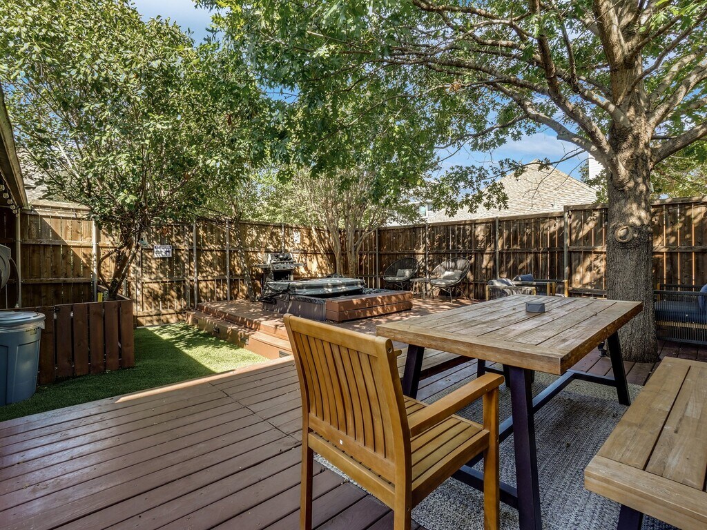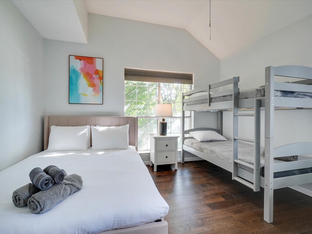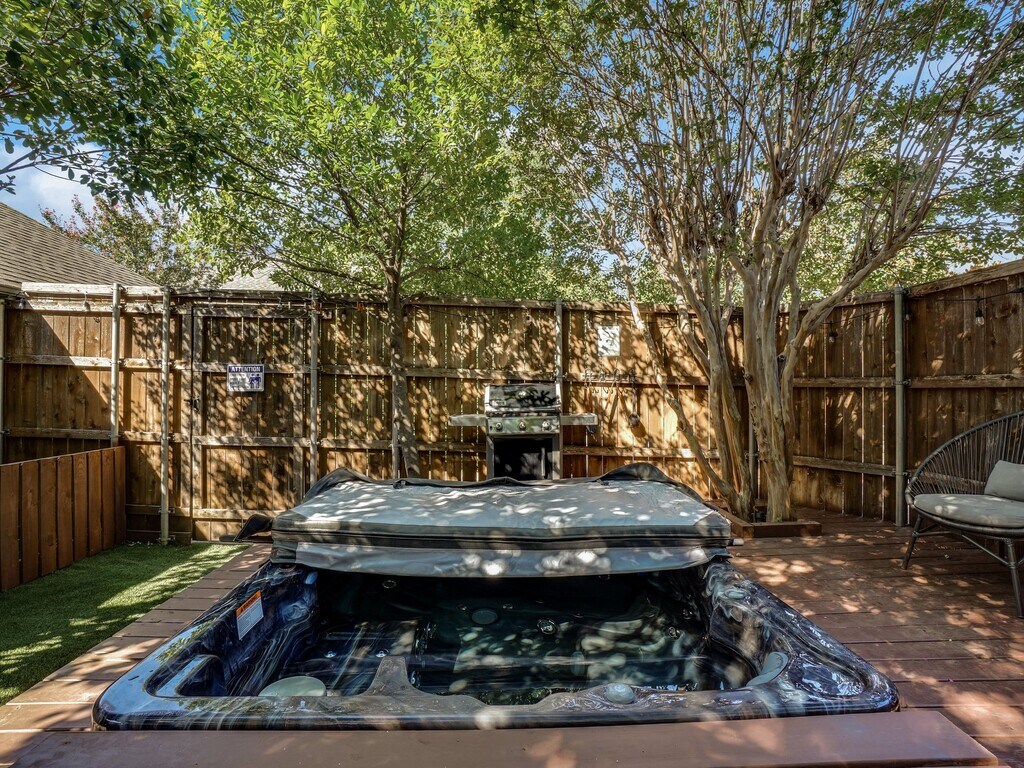 Fully furnished!! When you walk in you will immediately notice the high ceilings throughout the house. They give the entire house an extra level of comfort and luxury. The interior design brightens your mood and invites you to sit down and watch a quick show on the HD TV, or enjoy a nightcap. The house main room is built like a loft. It is one open space that encompasses the dining room, kitchen, and living room. That makes the house especially suited for socializing. Enjoy time with your family or invite some friends over whenever you are not in downtown Dallas. All of the finishing have been recently redone. You will feel as if the home was built just for your stay! Flashy colors add life to every room and compliment the fun paintings. Even if you are just relaxing after a long day, the expertly designed decor will put you in a good mood. The master bedroom has a lavish king bed. So does the second bedroom. The third bedroom has a sofa bed and bunk bed. The living room sofa can sleep 1 additional guest (very comfortably), there is also an air mattress available in case you have a lot of people! You will find the laundry room fully equipped with a washer / dryer, baby crib and highchair, vacuum and cleaning products. Please feel free to use any and all! Our back yard is perfectly fenced in to make any parent with little munchkins feel relaxed and secure. Enjoy alfresco meals under the stars on our outdoor dining set. It is a very cozy backyard perfect for all your needs. And the best part is a jacuzzi open 24/7 all year long so you can relax after a day enjoying the city Our garage can fit one car, 2 more can fit in the back driveway and 2 more can easily park on the street in front of the house. If you plan on bringing more than FOUR cars, please let us know first so we can help make arrangements.