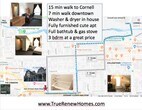 This apartment has 3 large private rooms each furnished with a full size bed, desk, chair, dresser, mirror, closet and curtains. It will be rented to a group of 3 (not by the room). The biggest bedroom has very large closet as well as built in shelves big enough to hold suit cases, big blankets, etc. The eat-in kitchen includes a couch and dining table and gas stove. The bathroom has a full tub and shower. Monthly utilities (gas and electric) have ranged from $68 ($23/person) in the summer to $150 ($50/person) in the coldest month. You can use google maps and choose "transit" and put 422 E State St as your starting point and choose your ending point at Cornell. Your closest bus stop for the bus to Cornell is "State@Stewart" just a 3 minute walk away. Multiple TCAT buses to Cornell stop there, the most frequent bus to campus is the Route 10 bus which comes something like every 5 minutes from 9am-5pm on weekdays. Super easy. The Route 15 Southside Shopper goes from "Green@Commons" (just 5 minute walk from the house many buses stop in front of Urban Outfitters) something like once an hour during peak travel times. This bus goes down to the giant Wegmans grocery store, Trader Joe\'s, Walmart, etc. Cornell affiliate staff and students find the location of the house super convenient. There are plenty of other buses that stop a quick walk from the house as well. Take a virtual tour on youtube! Copy and paste this link: