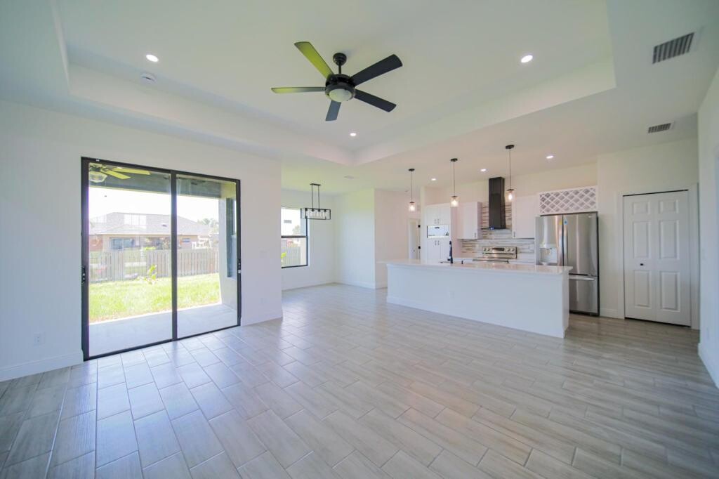 FOR RENT $2000. LOCATION, LOCATION, LOCATION Modern open floor plan 3 Bedrooms + Den, 2 Full Bathrooms, and 2 Car Garages w/motor. The Den has the possibility of becoming a fourth bedroom. This beautiful house also has an open lanai/patio. Grass w/automatic irrigation system. Located close to everything: schools, shoppings centers, gas stations, supermarkets, and Gyms. If you like to ride a bicycle or walk, you can enjoy the pedestrian corridor that surrounds the neighborhood of the house, you cannot miss these moments of relaxation. Only 25 minutes to Fort Myers Beach and historic Fort Myers DownTown. You Must See it!!!