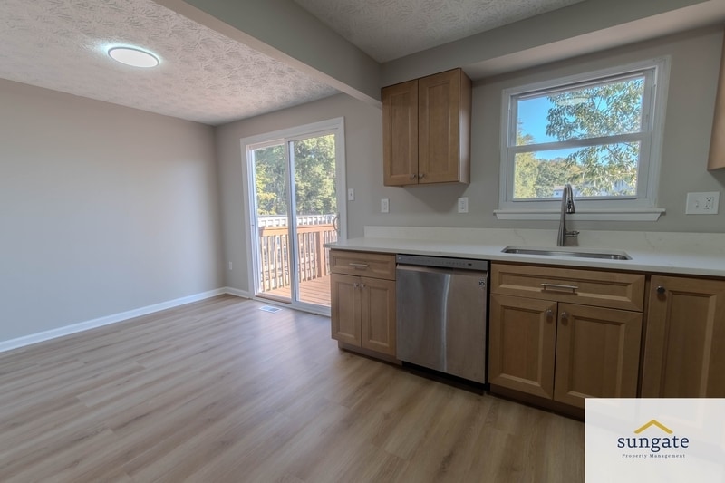 Welcome to this modern townhouse located in the Carroll Crest neighborhood of Middle River. The home offers three bedrooms, one and a half bathrooms, and a comfortable layout ideal for everyday living. The main floor features a bright family room with a bay window and a spacious country kitchen with sliding doors that open to a large deck—perfect for relaxing or entertaining. Upstairs, you'll find three generous bedrooms and a full bathroom. The walkout basement includes a half bath, a laundry area with washer and dryer, and plenty of storage space. This home is equipped with central air conditioning and comes with all major appliances, including a refrigerator, range and oven, microwave, dishwasher, washer, and dryer. Tile flooring throughout adds a clean and modern touch. The property also offers a fenced backyard and easy access to major routes, entertainment, dining, and shopping options nearby.