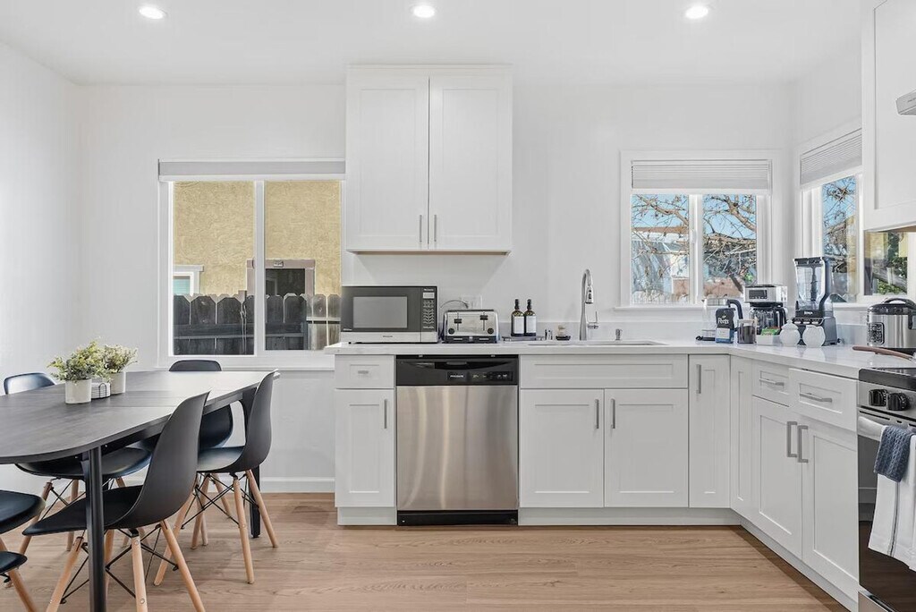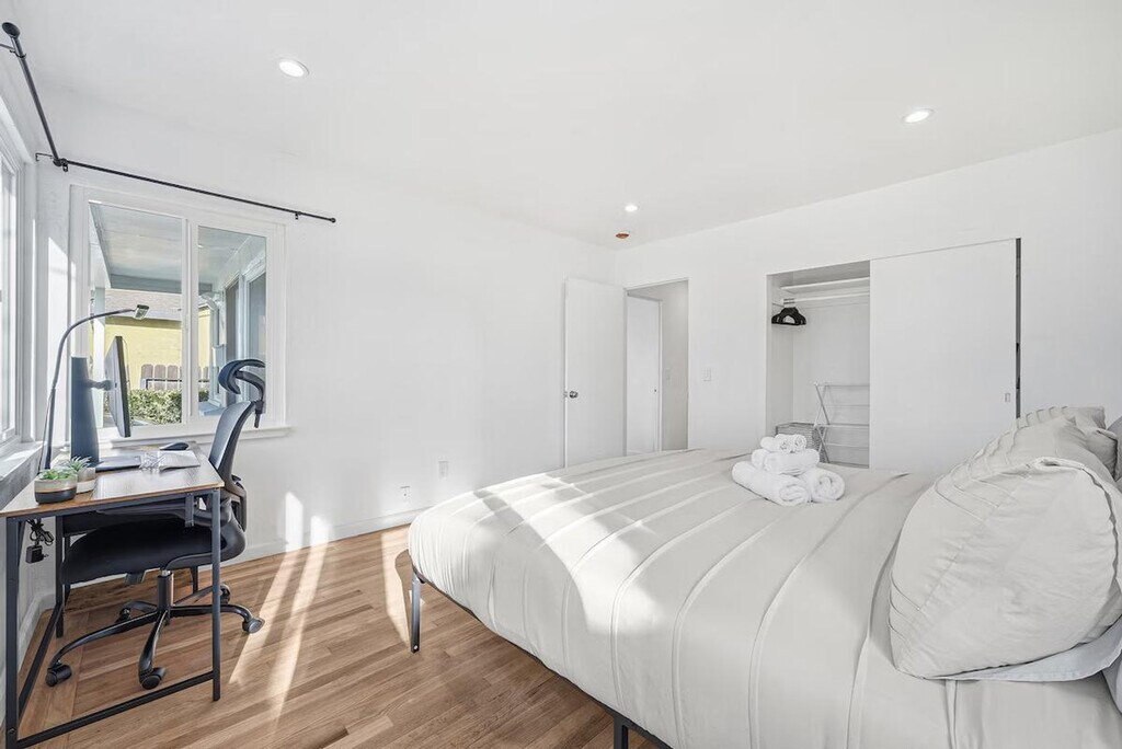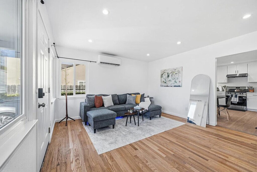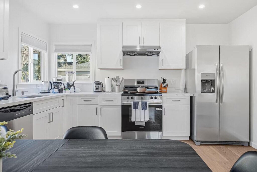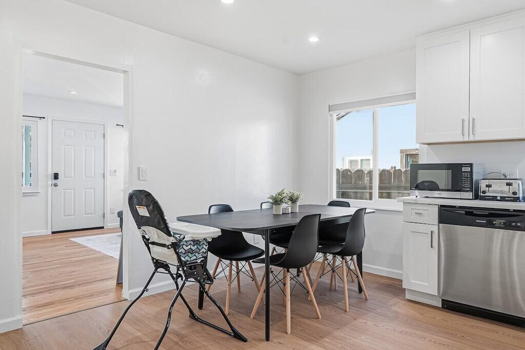 Welcome to this centrally located 2-bedroom home in Sunnyvale, perfect for families and business travelers. Feel at home in this comfortable and private space. This home features showers that are elder-friendly and a fully equipped kitchen with a 4-burner cooktop, oven, microwave, dishwasher, coffee machine, and toaster oven. For entertainment, there is a smart 75" TV with endless streaming. A new washing machine with laundry detergent is provided for added convenience. Two off-street parking spots are available on-site. Baby essentials are available upon request, including a high chair, pack and play, and toys. Grab coffee or brunch just minutes away at Starbucks Coffee Company, Coffeebar, Bean Scene Cafe, or Coffee. Enjoy drinks and snacks nearby at local cafes and eateries in the Sunnyvale Business Park and El Camino Real districts. This home offers a short commute to tech companies (Apple/Google/NVIDA) and easy access to Caltrain at Sunnyvale Station for exploring Silicon Valley. Shopping, dining, and services across Sunnyvale and nearby cities are just a short drive away. This is a shoes-off home, so please take your shoes off when entering. Absolutely no smoking is allowed inside or outside the home, and a $750 fee will be strictly enforced for violations. Strict no parties policy. Typical neighborhood sounds such as children playing, dogs barking, or cars passing by may be heard. Includes a desk and chair in the bedroom. Registration Number: 2025-0796 [SI]