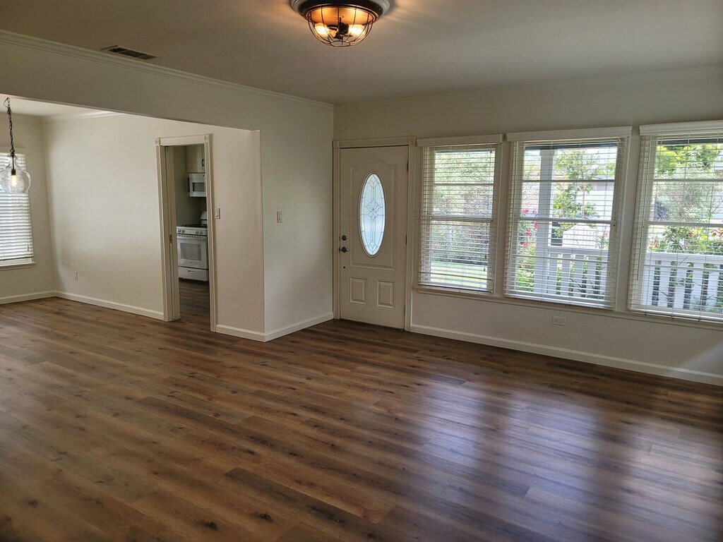 Introducing our charming 2 bedroom, 1 bathroom home complete with porch and white picket fence. Located in the heart of Old Towne Orange, CA, a block from Chapman University and The Plaza you'll be able to take advantage of all the city has to offer. Featuring modern finishes, new floors, new paint, and plenty of natural light, this property is the perfect space to call home. In terms of amenities, this unit is equipped with everything you need to live comfortably, including a well-designed kitchen and spacious living area. Beautiful counters in both the kitchen and bath. Additionally, in home laundry facilities for your convenience and garage storage. Come see why this is the perfect place to call home! VIDEO Tour: