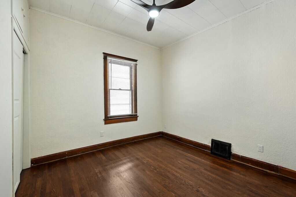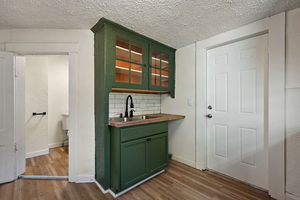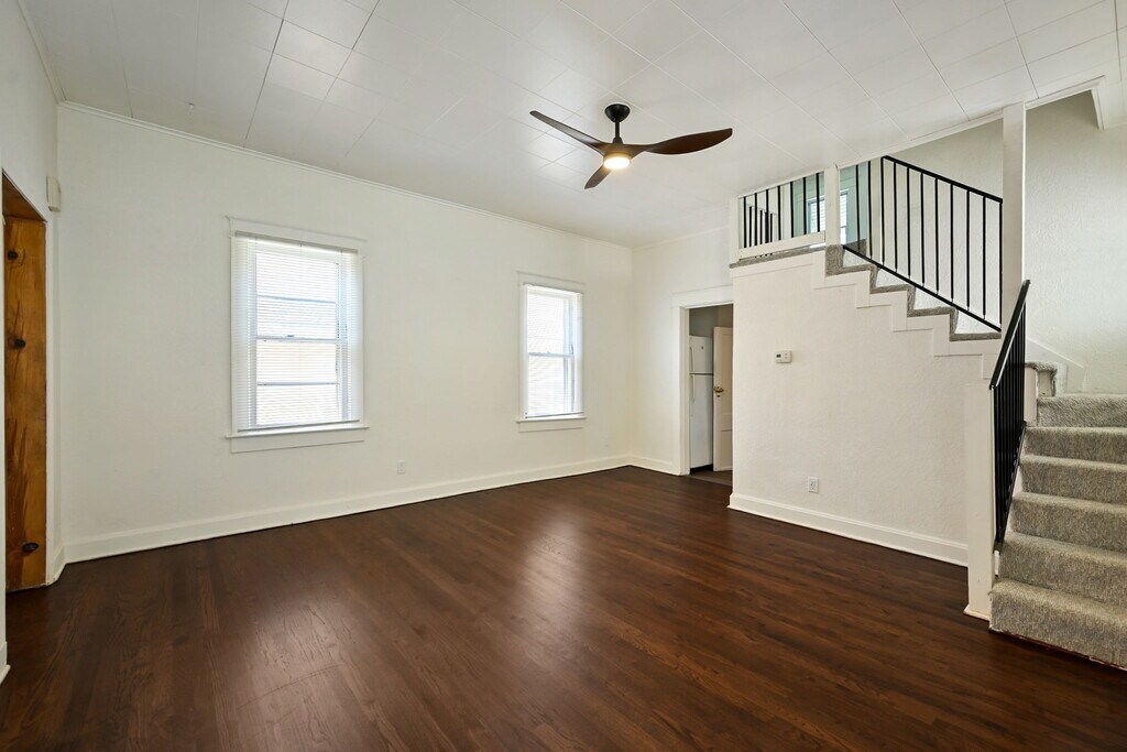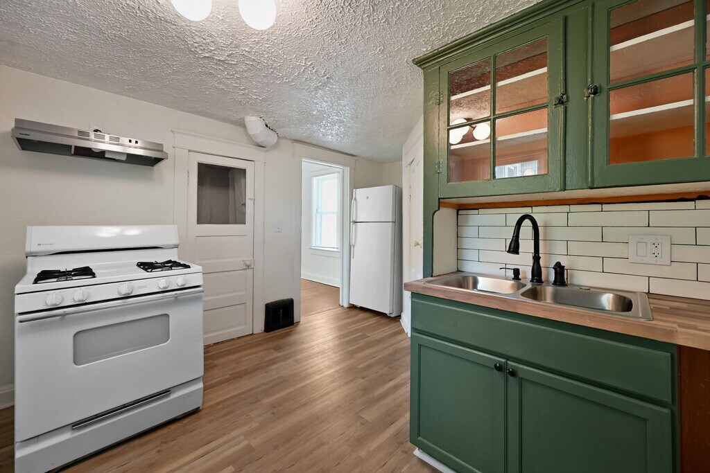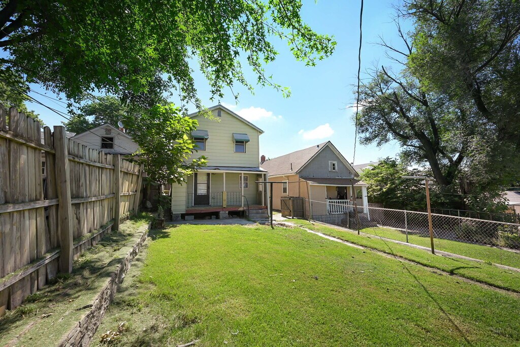 This Strawberry Hill gem offers surprising space inside! This updated 2 bed, 1 bath home features tall ceilings and refinished hardwood floors throughout the main level. The kitchen boasts painted cabinetry, butcher block counters, and a stylish tile backsplash. The bathroom has been completely updated with new LVP flooring, tiled shower, vanity, and more. Upstairs you'll find a spacious bedroom with brand-new carpet. Enjoy covered front and rear porches, a fully fenced yard, and off-street parking from both the front and alley. Full clean basement offers extra storage or workshop space with laundry hook-ups. Pet deposit and monthly fees apply. Close to all that Kansas City has to offer!