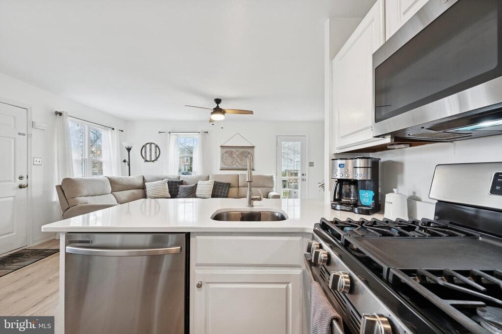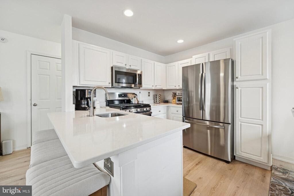 Beautifully updated and move-in ready, this END-UNIT townhome has been upgraded from top to bottom. Recent improvements include a new roof, new energy-efficient double-hung windows, and new laminate wood flooring on every level. The entire home has been professionally painted, including walls, ceilings, doors, and trim. Walk into the gorgeous open-concept main floor featuring upgraded lighting, new ceiling fan, and a new door leading to the private side deck. The kitchen has been completely refreshed with new stainless steel appliances, quartz countertops, a breakfast bar that seats three, a new recessed sink and faucet, garbage disposal, can lights, and freshly painted cabinets with brushed nickel hardware. Upstairs, you’ll find the 2 bedrooms, new flooring, new baseboards, and plus a modern ceiling fan in the primary bedroom along with the Full Updated Hall Bath. The finished basement expands your living space with new ceiling tiles, recessed lighting with a dimmer, matching flooring, a new window, fresh paint, new baseboards, and a newly drywalled storage room. Every detail has been thoughtfully updated, giving this home a fresh, modern, and well-maintained feel. Conveniently located near King Of Prussia, Major Highways, Valley Forge Park, Shopping, Restaurants, and Transportation. Schedule your tour today!