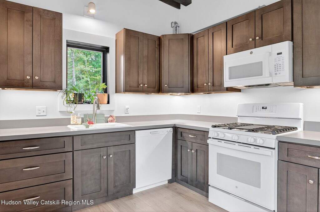 WOODSTOCK GUEST HOUSE FOR RENT - Immaculate unfurnished one bedroom,one bath guest house for year-round rent. Private setting,front patio and fenced yard. Open floor plan with ample natural light. All utilities included. Radiant heat floor with heat pump mini splits for added heat and AC. Stacked washer/dryer. Ideal location between Woodstock and Phoenicia accessible to all the Hudson Valley-Catskill Mountain area has to offer--world class natural beauty,arts,culture,cuisine and outdoor recreational resources including