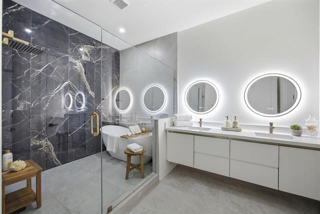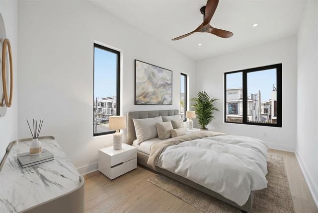 2% SELLER'S CREDIT AND 1% PREFERRED LENDER'S CREDIT TOWARDS CLOSING COST IS AVAILABLE. Welcome to this stunning newly built modern residence offering luxury living with exceptional design and natural light throughout. Featuring soaring ceilings and expansive floor-to-ceiling windows, this home is filled with sunlight and showcases clean architectural lines, wide-plank hardwood floors, and high-end finishes at every turn. The open-concept living area is highlighted by dramatic double-height ceilings, a custom built-in media wall, designer lighting, and seamless indoor-outdoor flow through oversized sliding glass doors. The chef's kitchen is equipped with sleek custom cabinetry, quartz countertops, a large waterfall island, stainless steel appliances, and elegant pendant lighting perfect for both everyday living and entertaining. Upstairs, spacious bedrooms offer oversized windows and abundant natural light. The spa-inspired primary bathroom features a freestanding soaking tub, frameless glass shower, dual vanities with illuminated mirrors, and modern gold fixtures for a refined touch. Step outside to your private backyard with low-maintenance turf and a covered patio ideal for relaxing or hosting guests. The rooftop terrace provides an additional entertainment space complete with room for grilling and outdoor seating perfect for enjoying city views and beautiful evenings. Additional highlights include a two-car garage, modern staircase with custom railing, designer finishes throughout, and premium craftsmanship. This home combines luxury, functionality, and contemporary style a rare rental opportunity you don't want to miss.
