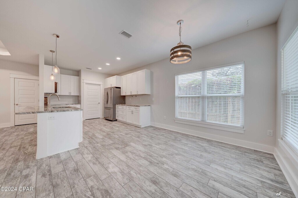 This custom built home is centrally located just off of Thomas Dr. and Bay Point. This new 3 bedroom 2 1/2 bath house boast Stainless steel appliances, white shaker cabinets , granite counter tops , and tile throughout the house. This rental is pet friendly with a nice fenced in back yard for your fury friends. Application is required before a showing. Credit and background check are required