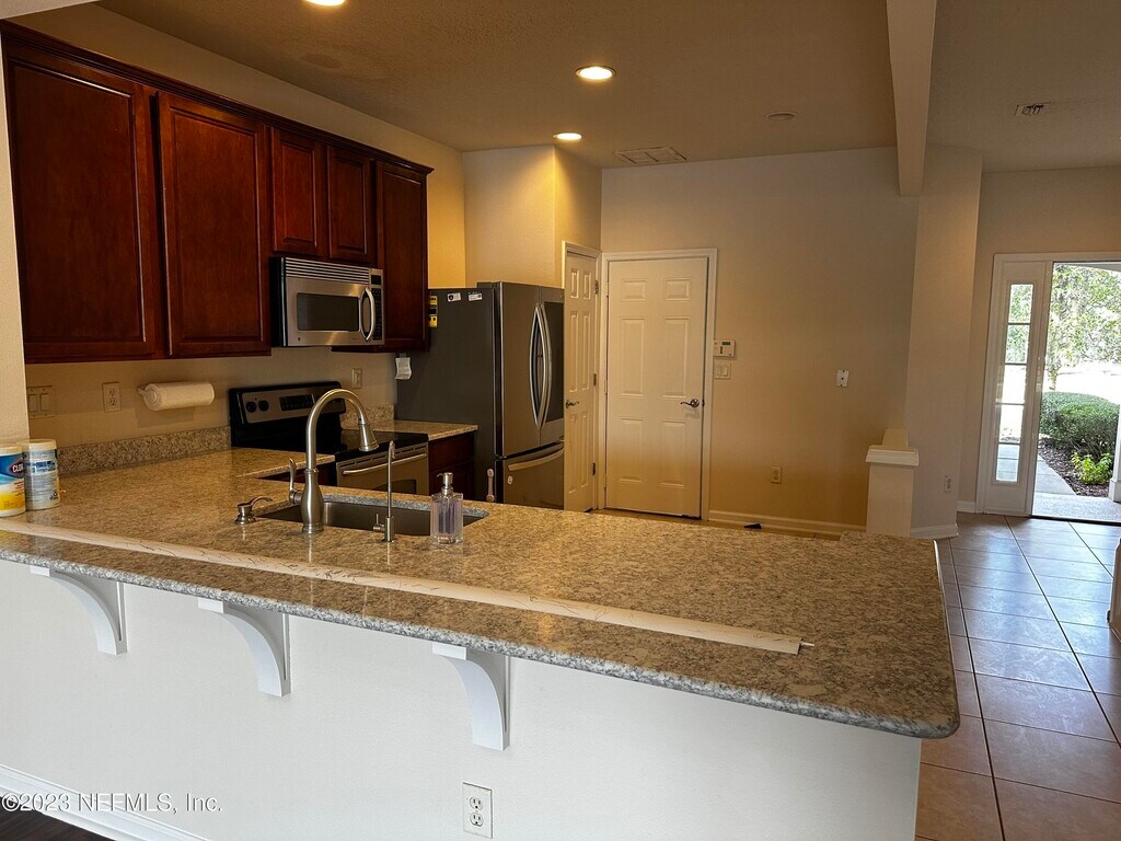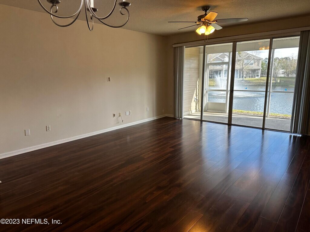 3-bedroom 2.5 bath,1 car garage,wood floor,screened lanai beautiful waterfront view,brick exterior,vinyl soffits. Designer interior features include ceramic tile,knock down ceiling texture,inside laundry,recessed lighting. The kitchen has raised panel 42-inch cabinets,granite counter tops,breakfast bar,nook,recessed lighting,tile,pantry closet,stainless smooth top range,built in microwave,dishwasher. The owners' suite has vaulted ceiling,walk in closet,his/her sinks. Set at the end of cul-de-sac low traffic. It is in Ironwood,which is a desirable gated community in one of the most convenient locations. St Johns Town Center and all major highways are within minutes. Tenant to pay one time HOA registration fee to Ironwood HOA. Tenant is responsible for first $100 of the repairs MLS# 2139792