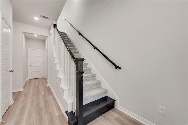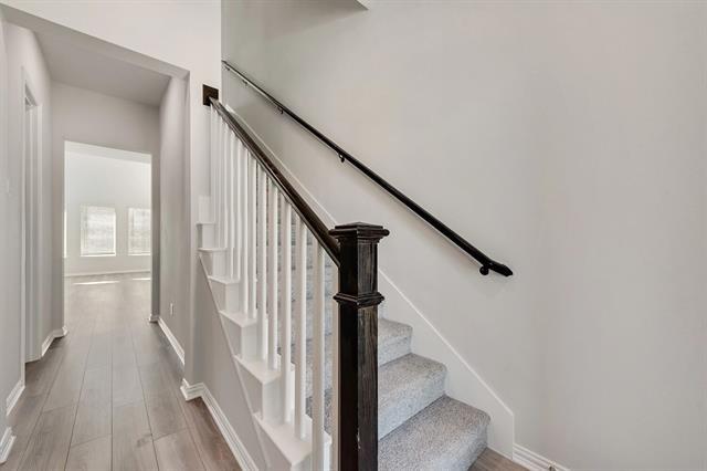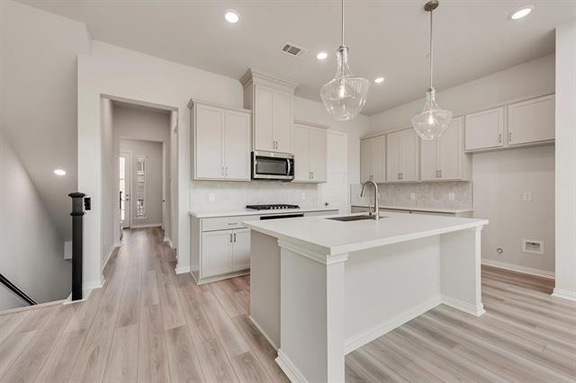 Wade Settlement is Frisco’s high-end, 3-story historic townhome community. You will enjoy a large private park, amenities center & pool, located close to all the attractions of the Frisco Business District, historic downtown Frisco, DrPepper Ballpark & Arena, the Dallas Cowboys’ FIT gym & Star event center, Stonebriar Centre & Legacy West. This 2,323 sq. ft. townhome is a welcoming, well-proportioned floorplan with 3 bedrooms, 3 bathrooms, a 2-car garage & two utility rooms. Aside from an owner’s suite with private bath, there is a junior owner’s suite on the 1st floor, offering much of the same elegant privacy. A loft gives you even more flexible living space, whether as a game room, hobby headquarters or separate entertainment area. The breakfast bar & kitchen island are open to the dining & living areas, while a covered porch & 2nd-floor covered balcony offer even more space for gathering, light dining or enjoying a fresh breeze. The laundry & garage entrance has a handy mud room. EV CHARGER AVAILABLE