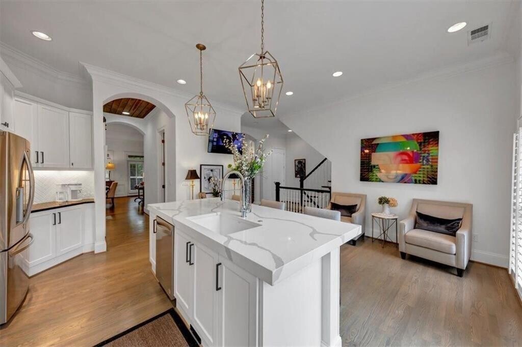 This expansive brownstone has the largest floorplan in the community and is filled with charming custom designs and finishes. Walk to Chastain and over a dozen restaurants and shops. 4 bedrooms,4 1/2 baths with a loft. Beautifully remodeled with an elevator and a 2 car garage. Plantation shutters,custom hardwoods,ceilings,and designer fixtures throughout! Two fireplaces and an abundance of outdoor living space with electric awning. Custom closets,marble,quartz,built in bookshelves and an end unit. Everything has been replaced and designer quality. A must see in one of the most desired communities in the area.