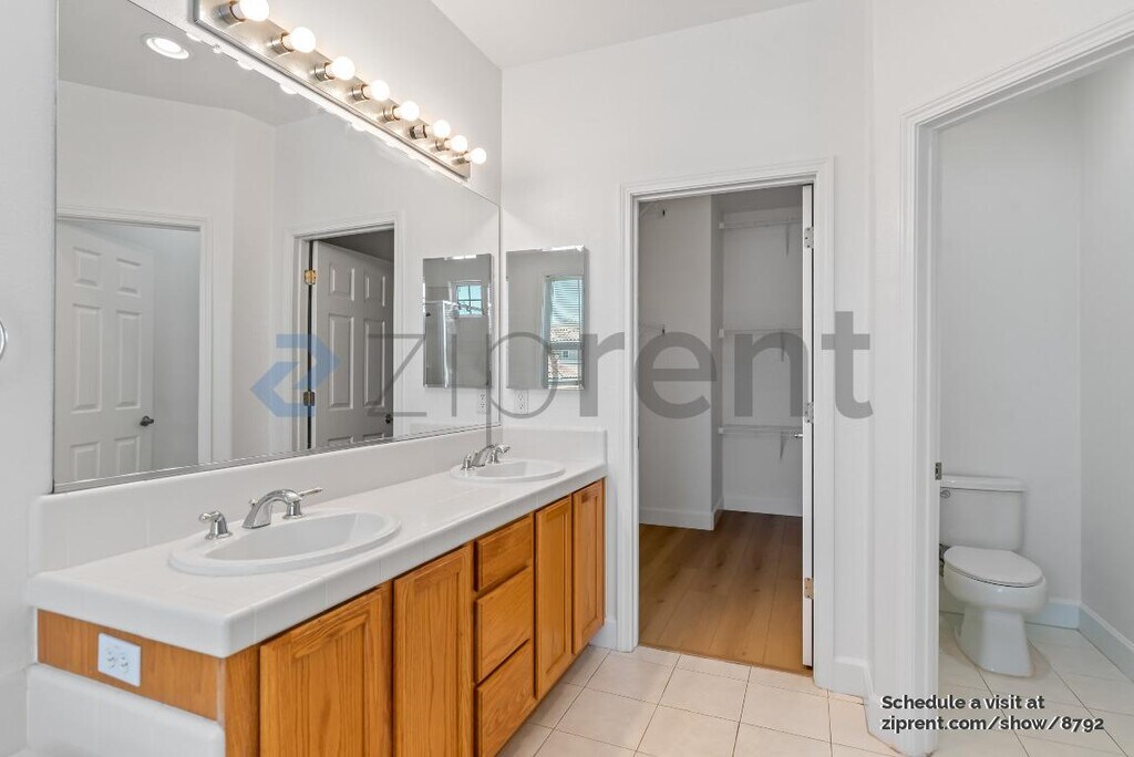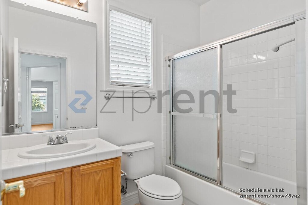 This property is available. Please inquire on this site to schedule a showing. NEW FLOORING AND FULL INTERIOR PAINTING! 2 bed 2.5 bath corner lot home with den available from 11/7! This two-level, single-family home features a two-car garage, newly landscaped drought-resistant backyard, lots of natural light, new floors, new interior painting, and is in a great neighborhood! The living room has a fireplace and high ceilings with a ceiling fan. The kitchen is equipped with a breakfast counter in addition to a dining room with access to the backyard, ample storage, refrigerator, microwave, electric range/oven, dishwasher, and recessed lighting. Powder room downstairs. There is a study/den with a high ceiling and a ceiling fan next to the entrance door. The master bedroom has a ceiling fan and double doors. The master split bathroom features an enclosed walk-in shower, spa tub, double vanity, walk-in closet, and separate water closet. The second bedroom has a ceiling fan, and the shared bathroom has a shower/tub combo. Brand-new laminate flooring throughout the home. New backyard and new guest bathroom flooring. New repaint of the entire house. ATT fiber is ready. Security deposit is equal to 1x the rent amount. Prefer no pets, but will be considered on a case-by-case basis with an additional deposit. The owner covers Garbage. Tenant is responsible for all other utilities. Pavers in the backyard with an edge of mulch with drought-resistant plants (needing very little water)! Tenant is responsible for maintaining the backyard, including ensuring weeds are removed timely. Near grocery stores (Safeway/strip mall), bank, Emerald High School in Dublin, corner unit home in residential quiet street, near Emerald Glen park, Wave (swimming pool), close to Dublin/Pleasanton BART, close to 580/680, kids park (on next street), close to elementary and middle school, near Farmer's market (spring/summer), restaurants. Available: NOW Heating: ForcedAir Cooling: Central Appliances: Refrigerator, Range Oven, Microwave, Dishwasher Laundry: In Unit Parking: Attached Garage, Off Street, 4 spaces Pets: Case by Case Security deposit: $3,900.00 Included Utilities: Garbage Additional Deposit/Pet: $500.00 Disclaimer: Ziprent is acting as the agent for the owner. Information Deemed Reliable but not Guaranteed. All information should be independently verified by renter.