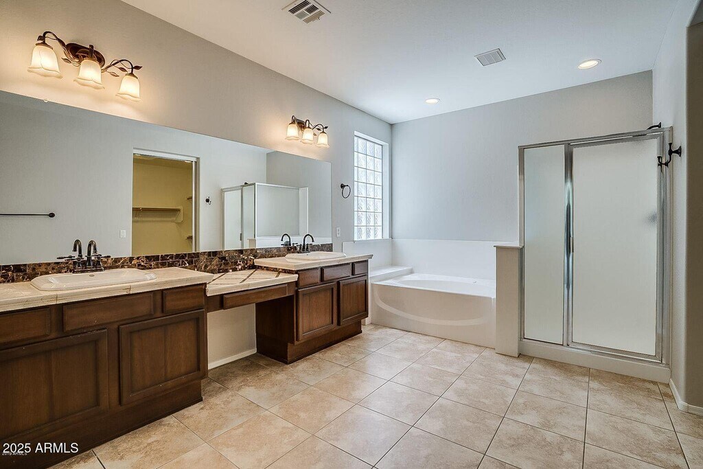 Upgraded and spacious large single level home. 4 bedroom,3 bathroom home with a 2 car garage. Close to the 202 and shopping. This home has a welcoming entry that leads to the open living space. The kitchen features granite counters and stainless steel appliances. There are 2 master bedrooms,they both have a master bathroom,one has a sitting room attached. Backyard has a covered patio.
