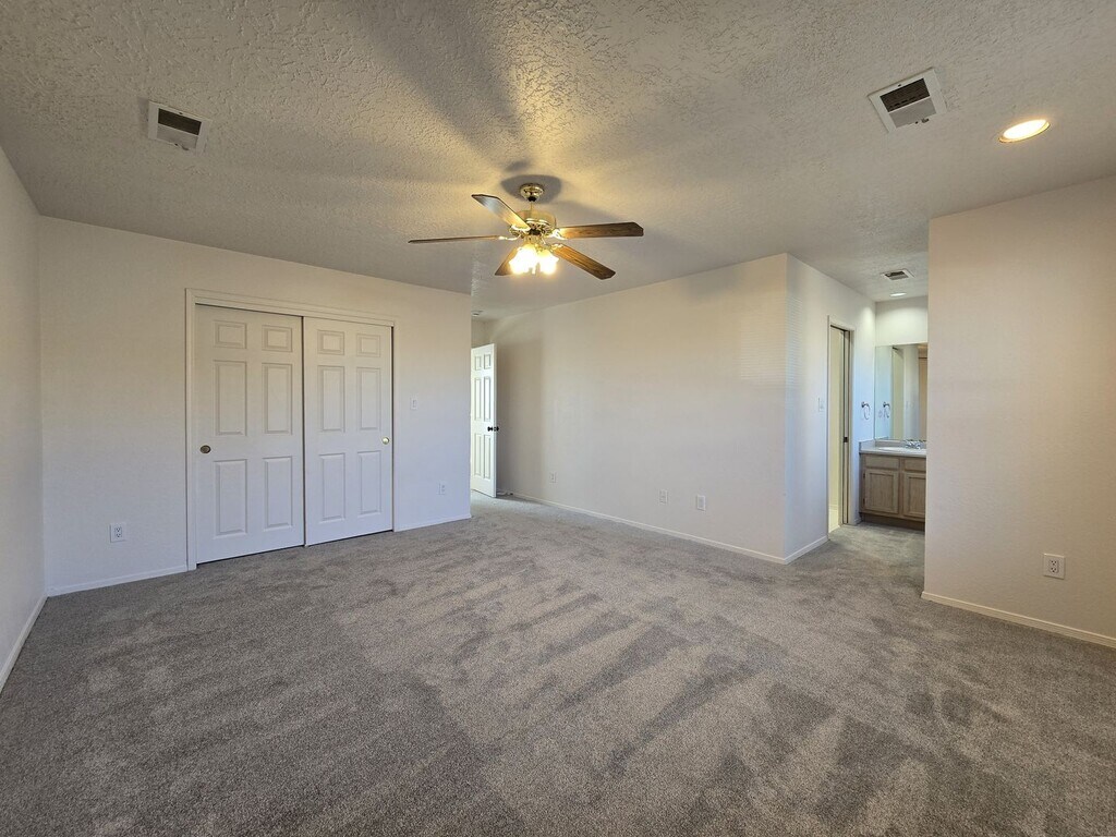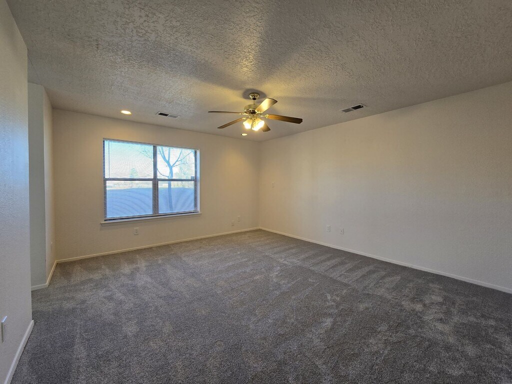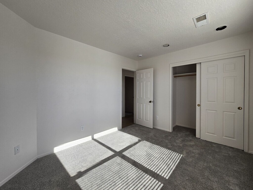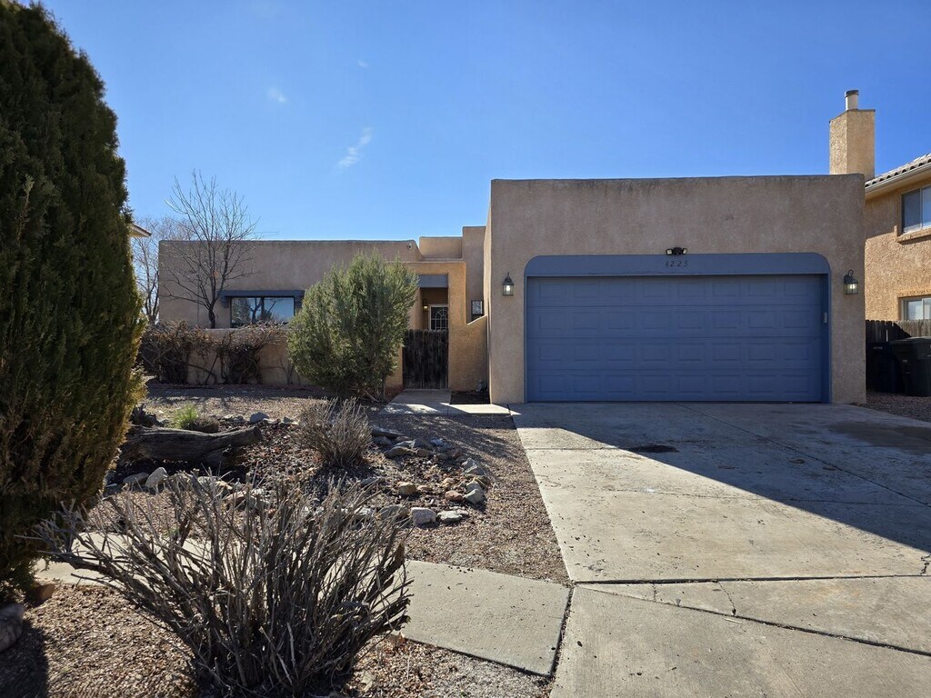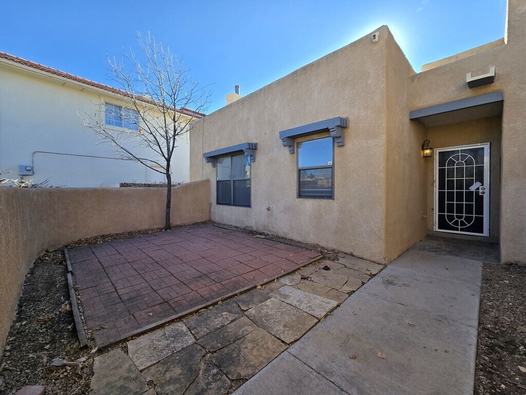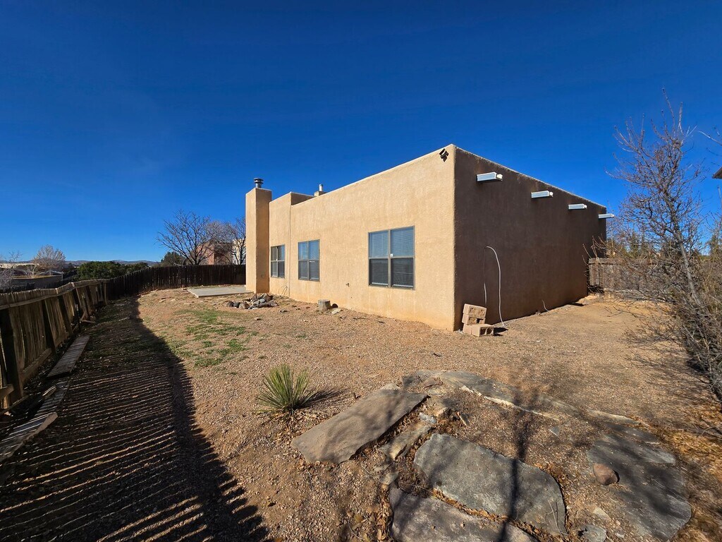 Embrace spacious, sun-drenched living in this beautiful residence, featuring classic Southwest stucco architecture and modern, flowing interiors. The heart of the home is an expansive open-concept living and dining area anchored by warm ceramic tile flooring and soaring high ceilings. Natural light streams in through large windows and sliding glass doors, highlighting the cozy corner fireplace—perfect for cool evenings. The adjoining kitchen offers functionality and style, featuring stainless steel appliances, a gas range, and a breakfast bar that seamlessly connects to the dining space. Retreat to the bedrooms, which offer a plush escape with newly installed gray carpet and ample closet space. The primary suite includes a generous ensuite bath featuring a large double vanity and built-in storage. The home’s exterior is designed for easy indoor-outdoor living, with a private, fenced backyard, a patio area perfect for grilling, and a classic enclosed courtyard/patio at the entrance, offering two distinct outdoor living zones. Additional features include a separate laundry room and an attached two-car garage. This property is a harmonious blend of New Mexican charm and contemporary comfort, designed for effortless entertaining and daily living. Brant Goodman, Qualifying Broker. Rental Fees & Policies Application Fee • $50 per applicant age 18 or older. Move-In Costs • Security deposit equal to one month’s rent • First month’s rent due at lease signing Pet Policy • $250 non-refundable pet administration fee • $50 per month, per pet Utilities • Tenants are responsible for establishing and paying all utilities directly with the utility companies. Renter’s Insurance • Tenants are required to maintain renter’s insurance for the full duration of the lease