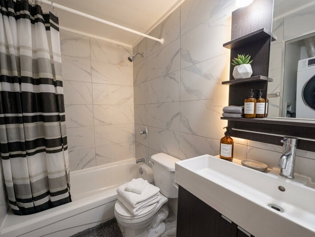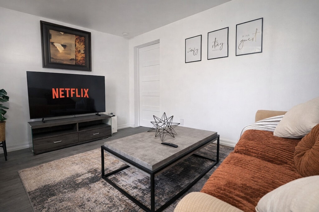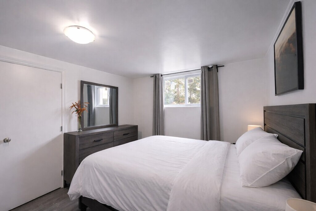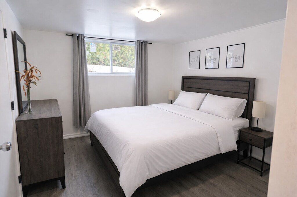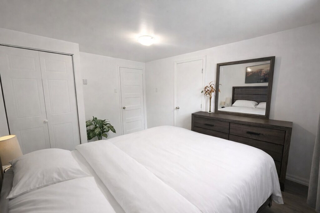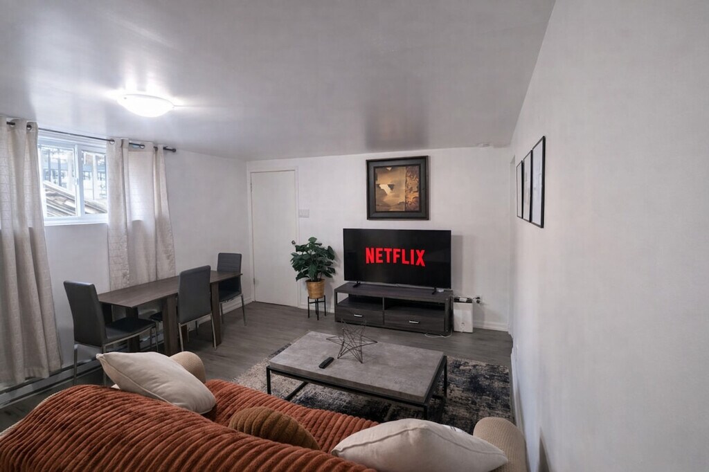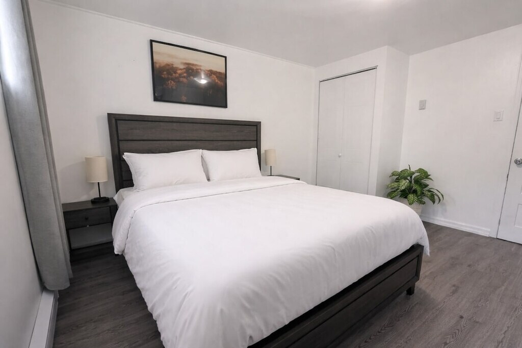 The advertised rate of C$4,721/month is the lowest available price, based on a 1 month(s) stay with a move-in date of June 6, 2026. Rates vary depending on the duration of stay, season, and other parameters. For exact pricing and additional pricing components, please visit our website and enter your desired move-in and move-out dates. The rate is applicable when billed upfront; it can be higher if billed in multiple payments. Feel at home in this stylish 1-bedroom retreat, offering the perfect blend of comfort, convenience, and functionality. This apartment has everything you need for a seamless stay. Unwind in the cozy living space and enjoy your favorite shows on the Smart TV. The fully equipped kitchen includes cookware, essentials, and a Keurig coffee machine. For added convenience, there is an in-unit washer and dryer. Hassle-free on-site parking is included with your stay. Take advantage of the seasonal pool available from May to August. Conveniently located near YUL Airport, this apartment is perfectly situated just 15 minutes from Montréal-Trudeau International Airport, making arrivals and departures effortless. Enjoy complete privacy in your own private oasis. This stylish retreat offers you the entire space, with a private entrance to the side of the property, ensuring your stay is truly peaceful and undisturbed. Self check-in is available with a simple and secure smart lock. A dedicated dining table is perfect for meals or getting work done. Fast Wi-Fi is available, perfect for streaming or working remotely. [SI]