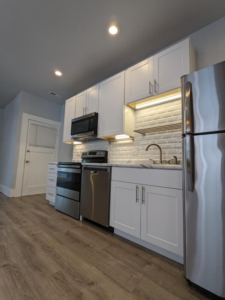 Discover this beautifully renovated 2nd-floor apartment in the heart of historic Shaw, blending timeless charm with modern elegance. This 2-bedroom gem boasts an open floor plan with exposed brick walls, tall ceilings, keyless entry and new hardwood plank flooring. The pristine kitchen dazzles with sleek white cabinetry, under cabinet lighting, expansive countertops, a stylish white tile backsplash, and top-of-the-line stainless steel appliances, including a spacious refrigerator, dishwasher, range oven, over-the-range microwave, and a high-end in-unit stacked washer/dryer.French doors and large, double pane windows flood the space with natural light, while energy-efficient forced air heating and cooling ensure year-round comfort. Step outside to a fenced-in backyard featuring a rear deck with serene views of lush greenery and historic surroundings. A versatile basement offers ample storage for all your needs. Nestled on a quiet cul-de-sac with local traffic only, this apartme...