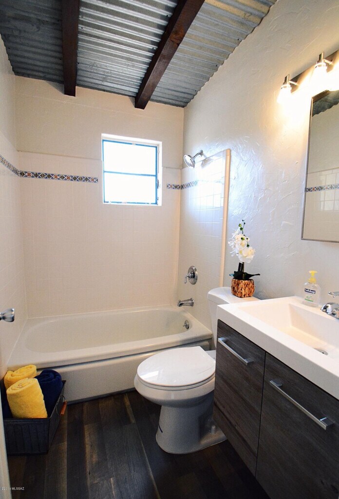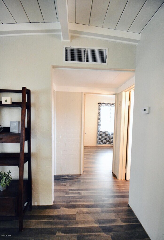 1950's charm with contemporary kitchen and bath. 2 bedroom, 1 bath with detached office/ workout space. Tall beamed ceilings, no carpet. Carport and fully fenced large yard. Very central location. Easy bike ride to Reid Park, groceries, coffee, restaurants, El Con shopping, DMAFB, U of A etc. One dog under 50 lbs welcome, with prior landlord approval. No smoking. Washing machine + AC + central heat work, dishwasher does not. *Please don't apply if you're the type of tenant that wants to call me for minor issues, like if the toilet is clogged. Minimal interaction between us is preferred.*