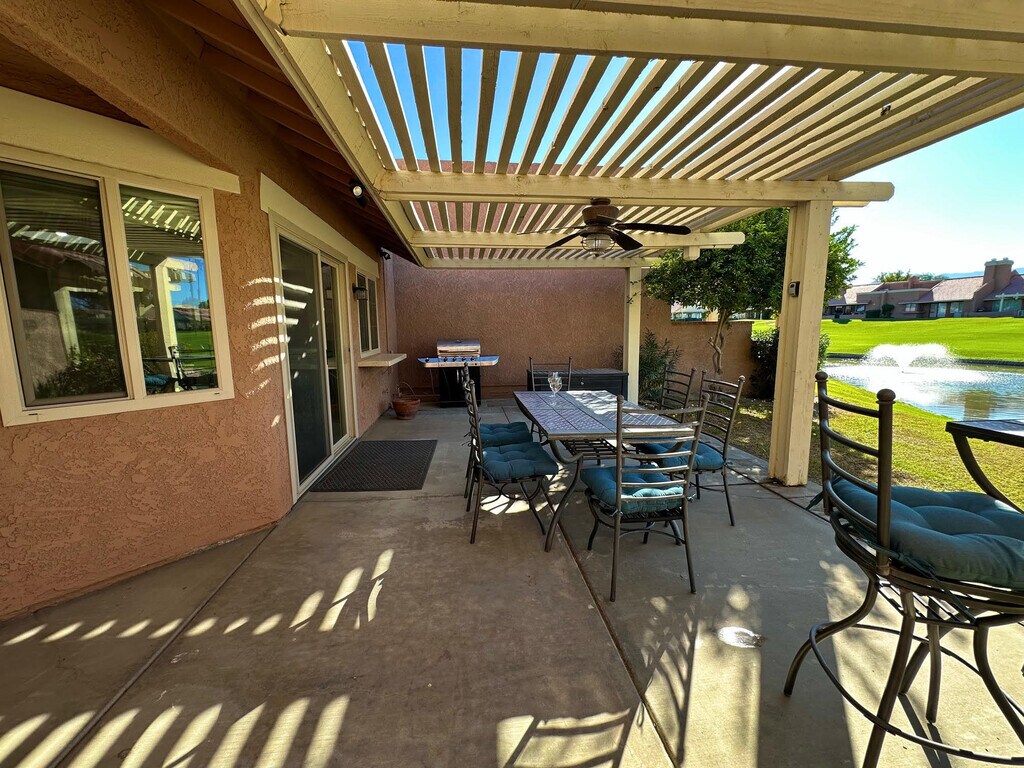 Seasonal Rental Jan-Mar 2026. Located within the Oasis Country Club,this charming two bedroom,two bath condo offers a picturesque setting with breathtaking views of the mountains,golf course and a lake. Spacious patio covered deck allows for outdoor enjoyment. The Oasis CC offers many amenities,golf,practice area for hitting golf balls,tennis,pickle ball,18 hole putting course,18 pools and spas,fitness room & a dog park. The clubhouse offers two restaurants,one is casual dining in The Grille and the other is the larger dining room and lounge and banquet rooms. The Oasis CC is centrally located in Palm Desert and close to world class amenities and activities.
