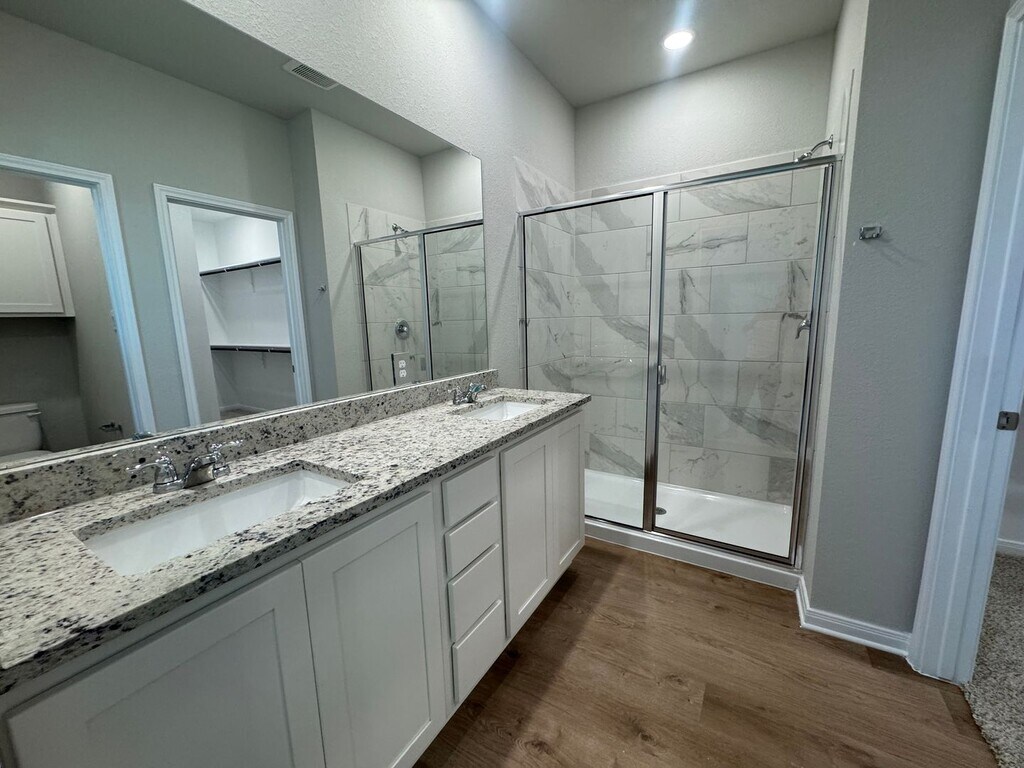 This beautifully designed 4-bedroom, 3-bathroom duplex features 1800 sq. ft. of ample living space, boasting an open-concept layout, hardwood laminate flooring, and soaring 11-foot ceilings. Large windows throughout provide excellent natural light in every room. A stunning chefs kitchen includes; stainless steel appliances, granite counter tops, large kitchen island, stylish tile backsplash, and sleek white cabinetry. The spacious primary bedroom, located on opposite end of the home from the secondary bedrooms, features an ensuite bathroom including granite counter-tops, double vanity, generous cabinet storage, and a luxurious walk-in shower. The expansive walk-in closet is sure to impress, offering more than enough space for all your needs. Just off the garage, you’ll find a practical and stylish drop zone—perfect for organizing your daily essentials. Every inch of this home is designed with functionality in mind and smart storage solutions throughout. Start and finish your day on the private patio looking out to a spacious, fully fenced backyard. Perfect for enjoying the breathtaking open skyline. Located just 15 minutes south of downtown Austin via I-35, this prime location also offers easy access to Kyle, San Marcos, and New Braunfels. Don't miss this opportunity to experience living the perfect blend of style, comfort, and convenience at Emma Park!