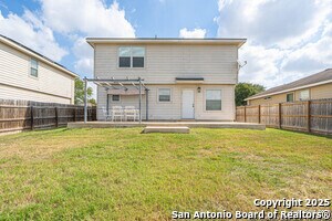 Welcome home! Ideally located just minutes from schools, shopping, dining, major highways and Lackland AFB. Step inside to an open living room with plenty of natural light. Upstairs you will find another living area and 3 bedrooms including the primary bedroom with a private bathroom. The backyard comes complete with a patio and pergola, ideal for morning coffee or evening gatherings.