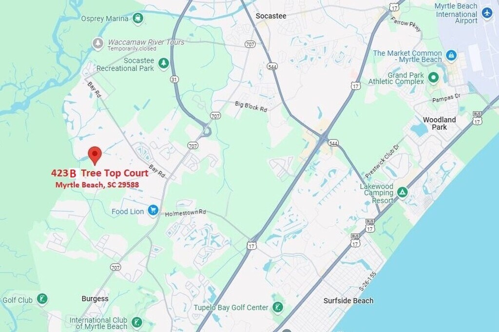 423 Tree Top Ct has 3 parks within 10.5 miles, including Surfside Beach, Family Kingdom Amusement Park, and Myrtle Waves Water Park.